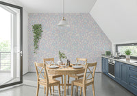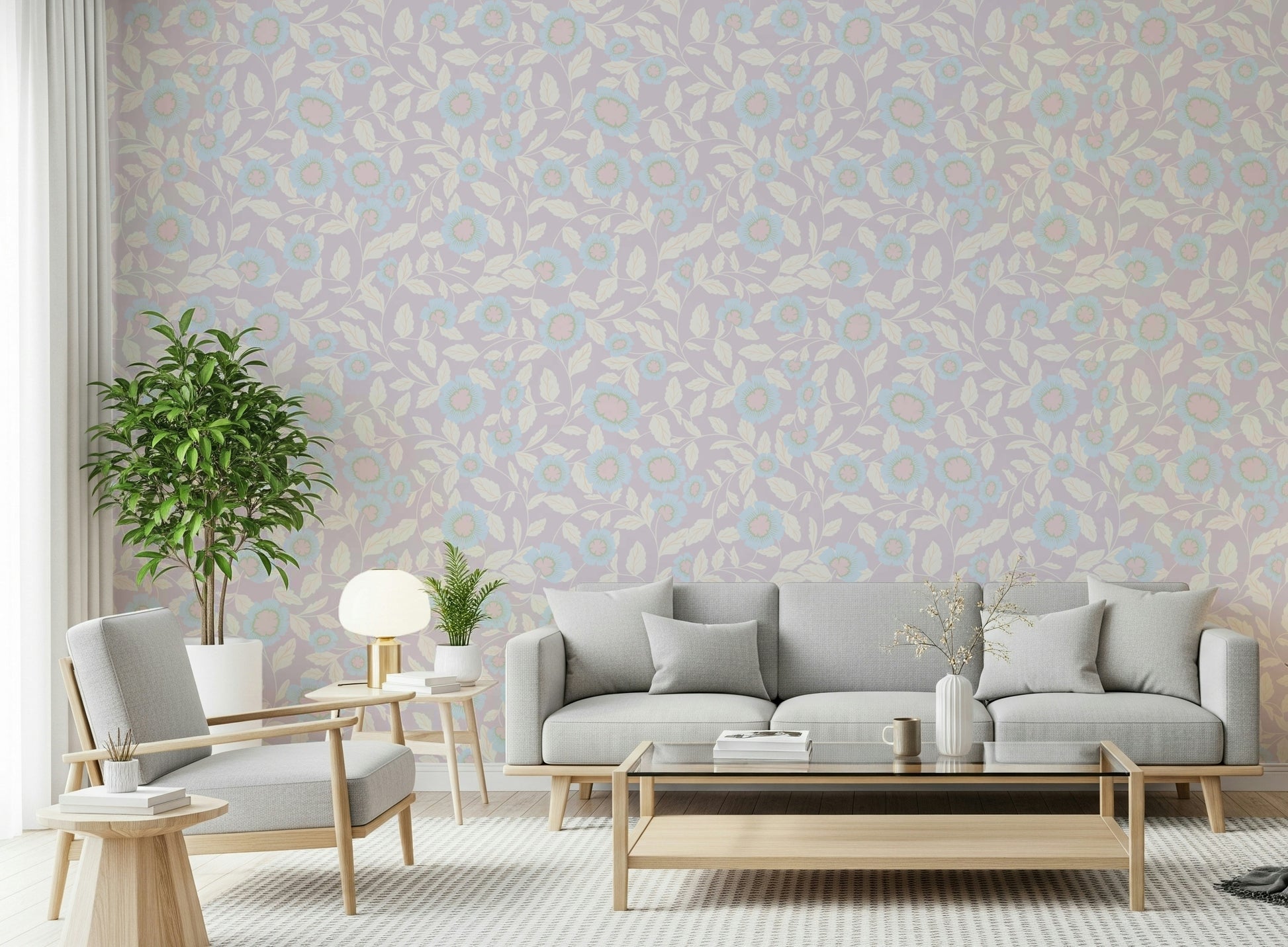 Transform your space with this serene floral wallpaper. Pastel blooms in baby blue and blush pink dance across a soft lavender backdrop, creating a calming and inviting atmosphere. The simple, stylised design brings a touch of nature indoors without overwhelming the senses. This versatile pattern works wonders in bedrooms, nurseries, or even a cosy reading nook. It’s the perfect wallpaper for walls to give living spaces a gentle, sophisticated charm. Elevate your interiors with this harmonious blend of colour and design.