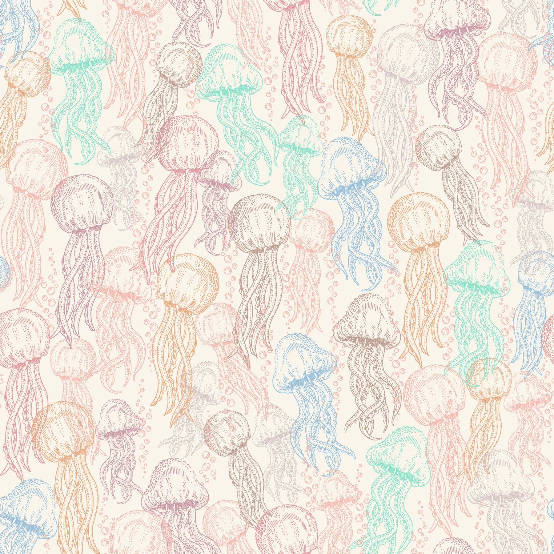 Dive into a serene underwater world with this 'Pastel Jellyfish Doodle' wallpaper. Delicate, hand-drawn jellyfish in a spectrum of soft pastel hues drift across a calming cream background. Each jellyfish is meticulously detailed, showcasing flowing tentacles and subtly textured bodies. Scattered bubbles add to the ethereal ambiance, creating a dreamy and whimsical feel perfect for adding a touch of oceanic tranquility to any digital device. The doodle-like style maintains a playful yet sophisticated aesthetic, making it a versatile choice for various personal styles.