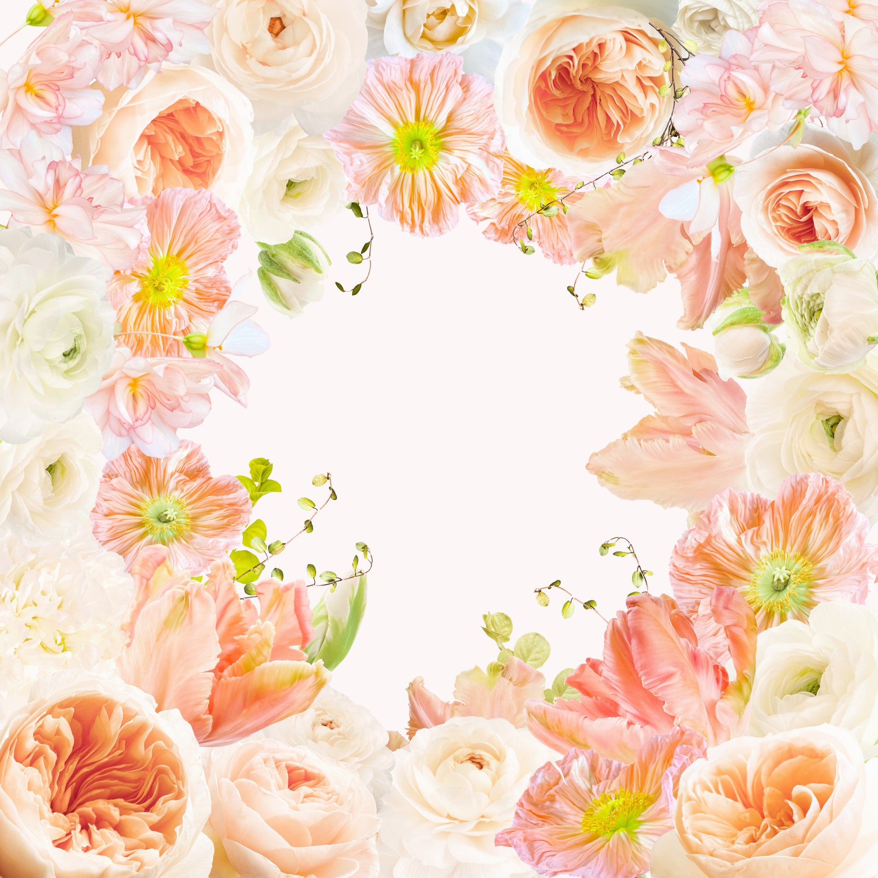 Escape to a world of gentle beauty with this wallpaper, a captivating display of pastel-hued blooms. Delicate roses, elegant tulips, and charming poppies intertwine to form a mesmerizing frame around a pure white core. The soft peach, blush pink, and creamy ivory tones create an ambiance of tranquility and serenity, perfect for bedrooms, nurseries, or any space craving a peaceful retreat. This wallpaper offers a subtle yet captivating visual experience, the intricate details of each blossom adding to the overall dreamy and sophisticated aesthetic. It's a harmonious blend of natural beauty and artistic elegance.