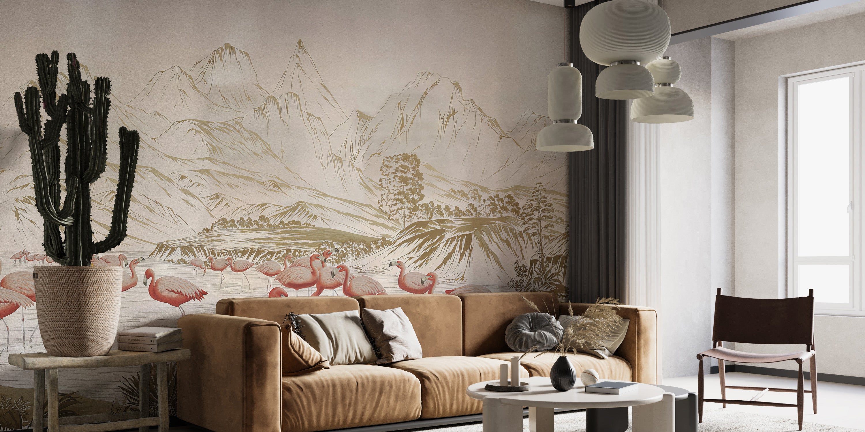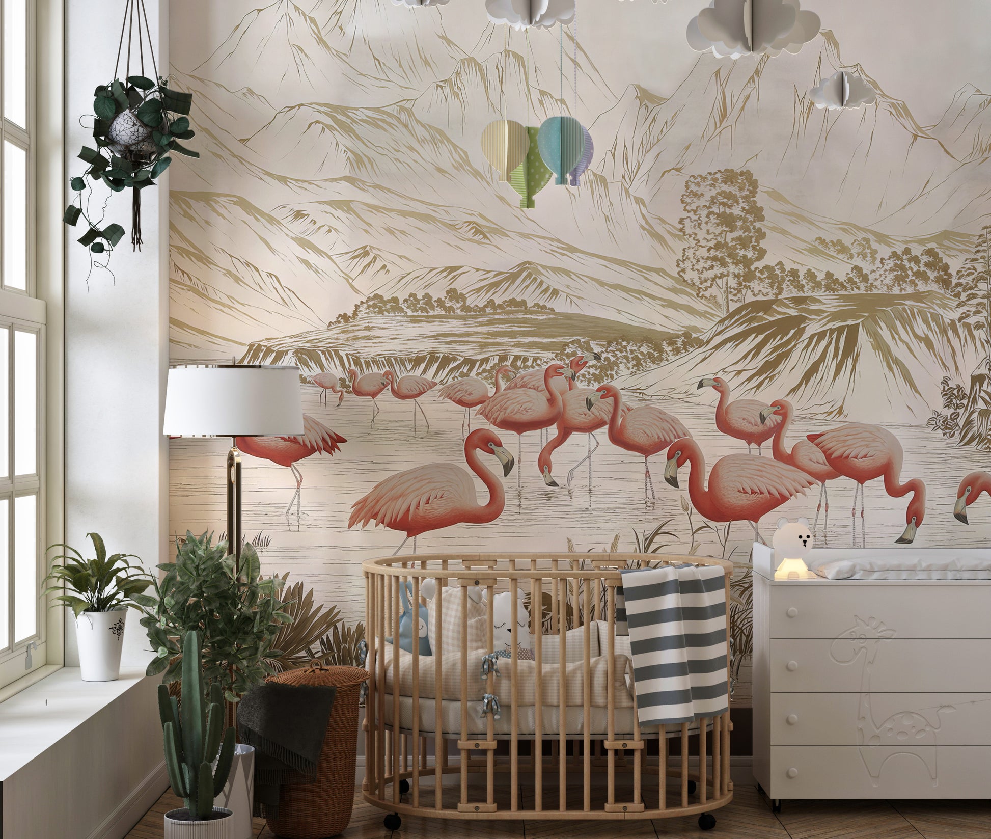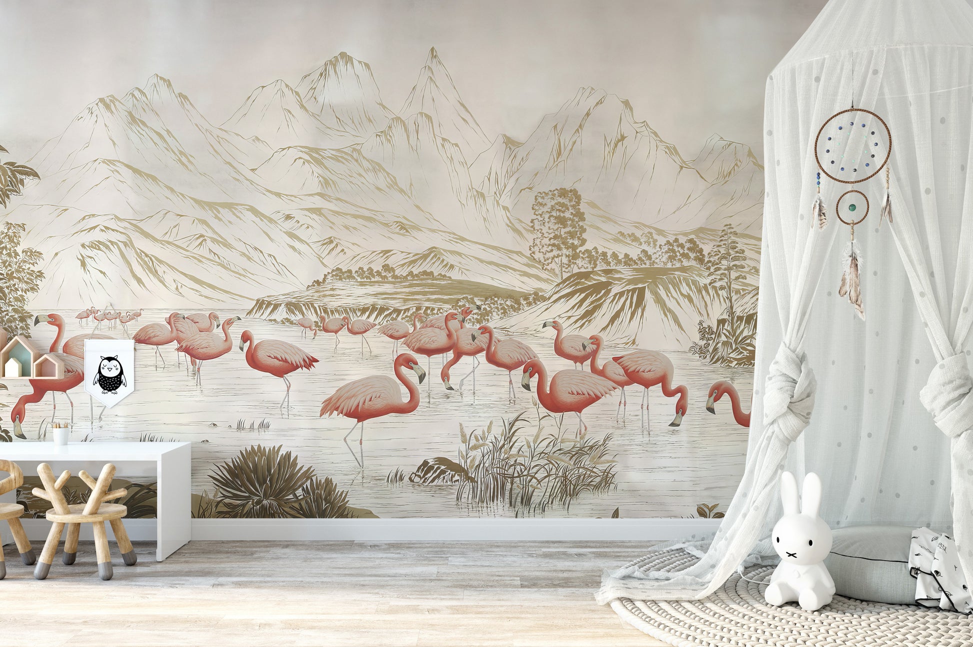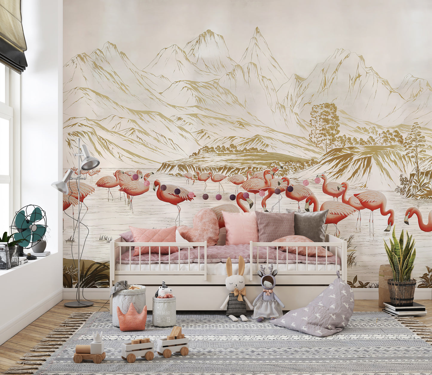 Use this pastel pink color wallpaper to welcome the soft glamour of pastel shades through whose doors the spirit of a flock of flamingoes playfully welcomes you to your room that you both will absolutely adore.