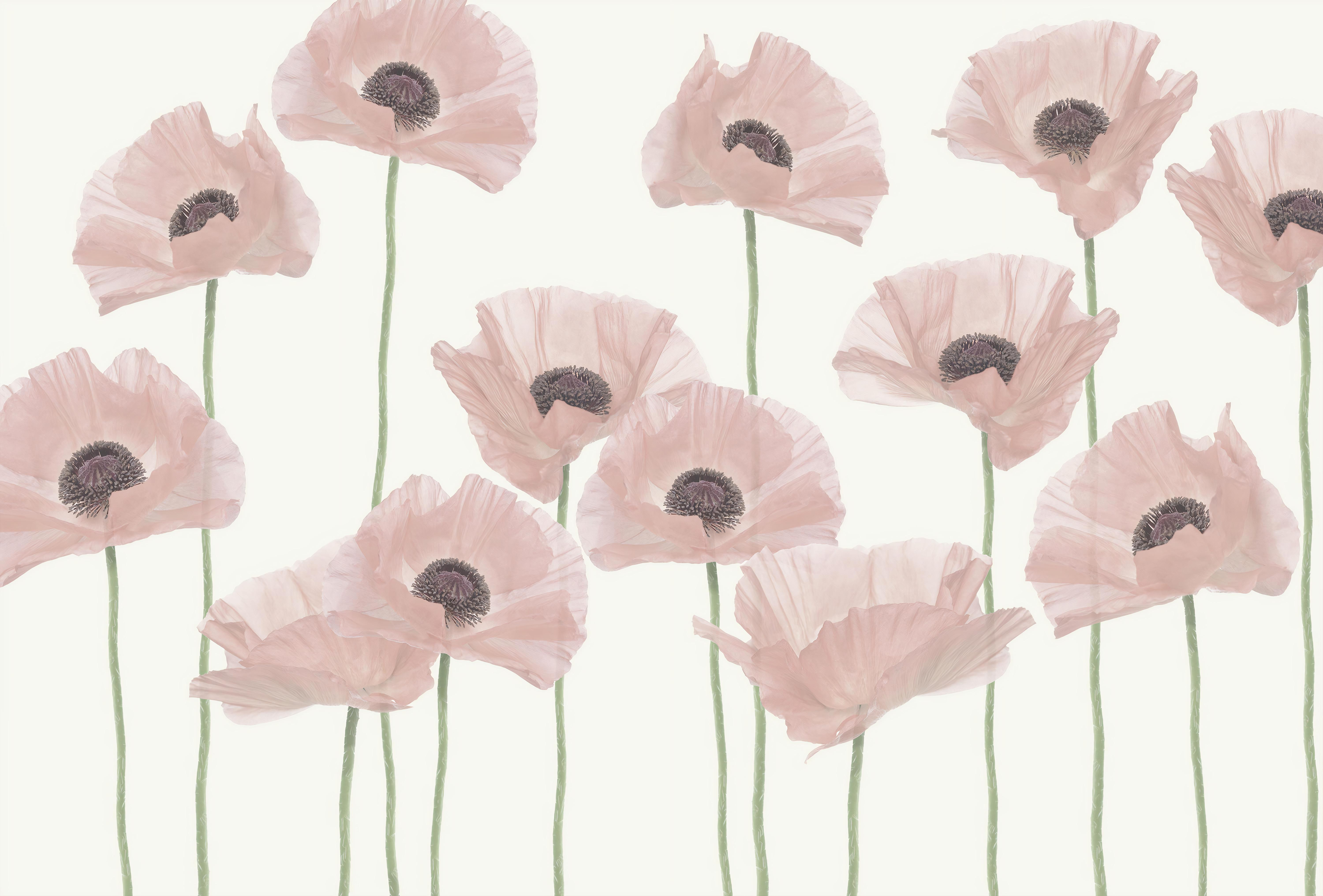 Elegant pastel poppy flower wall covering