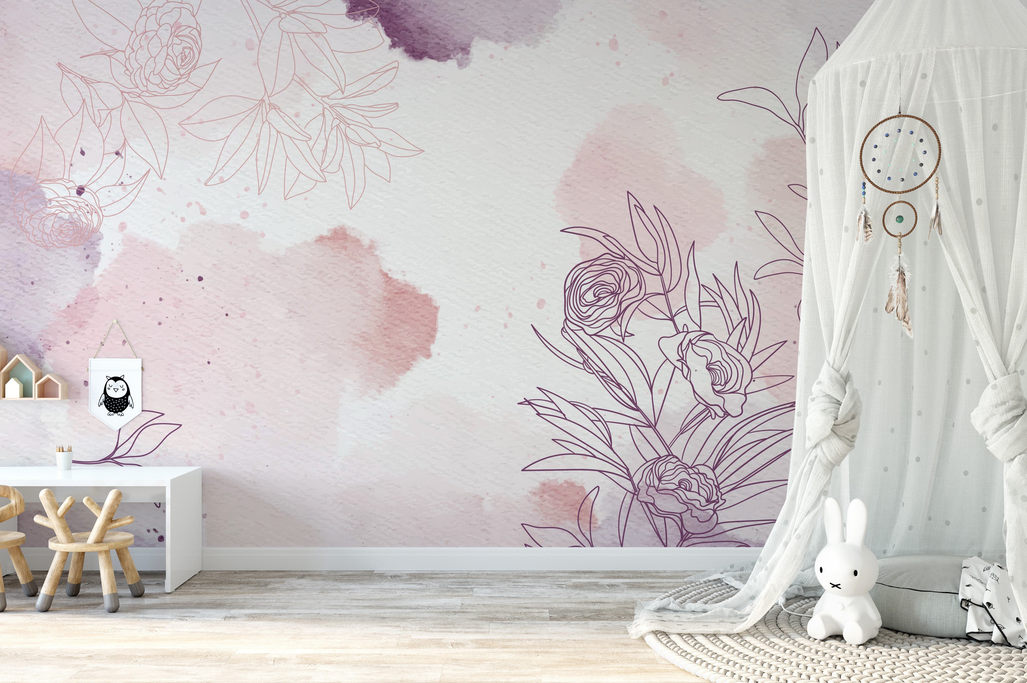 Our pastel pink purple watercolor floral wallpaper will add a soft touch of beauty to your room. This purple background wallpaper has a dreamy mix of soft pink and purple colors that come together to make soft flower designs that make you feel calm and romantic. This piece adds a simple touch of elegance to bedrooms, nurseries, or cozy reading nooks. It's made to last and is easy to set up, and it's a beautiful choice for anyone who wants to add soft floral art to their area. Change your house right now!