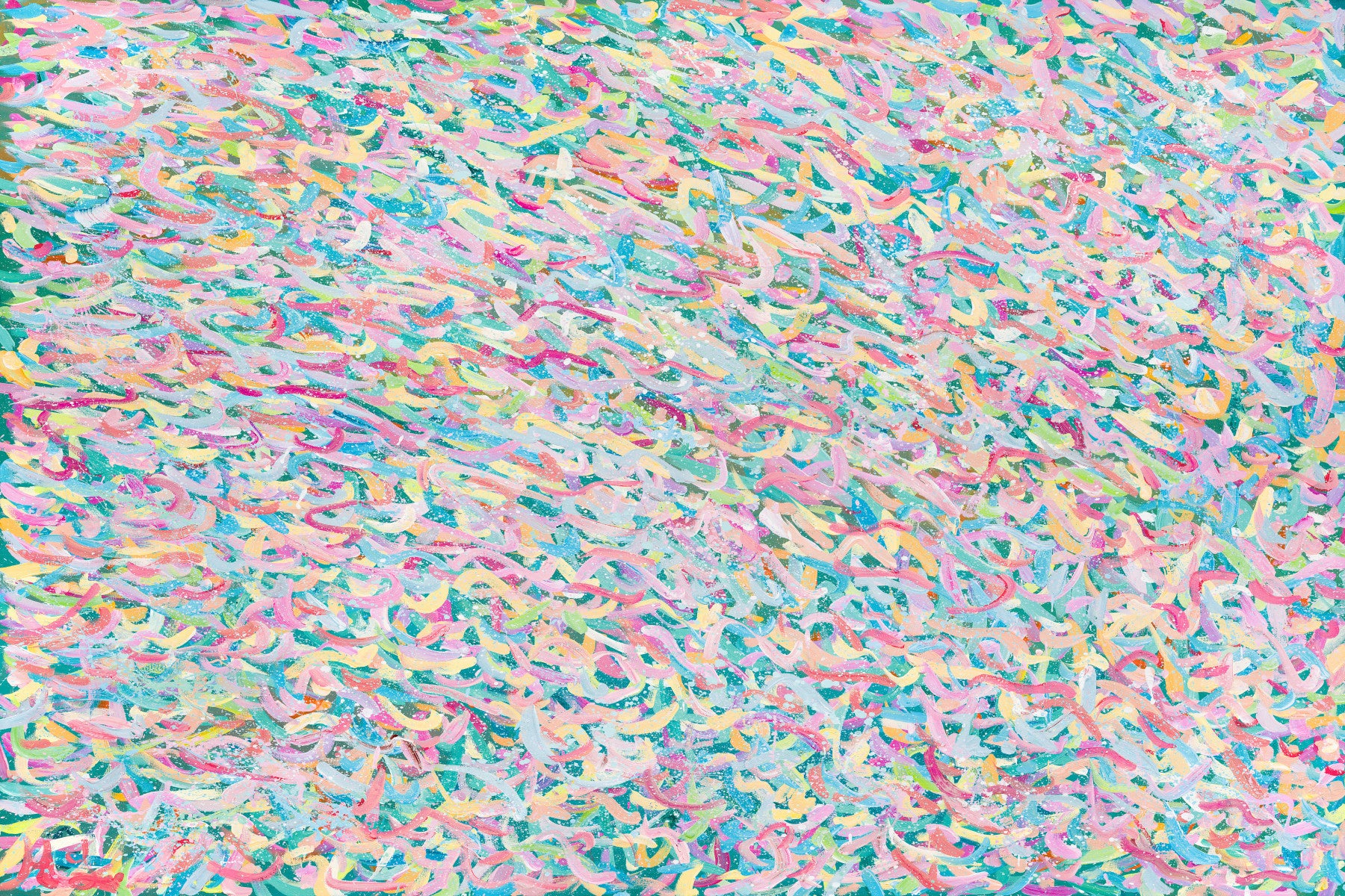 Transform your space with this playful wallpaper for walls! Featuring a vibrant mix of pastel swirls, the design creates a lively and modern atmosphere. Pink, turquoise, and lemon hues intermingle in brushstroke patterns. This wallpaper design will brighten up a kid’s room, playroom, or any space that could use a touch of whimsy. Use it to create a cheerful backdrop that complements both contemporary and eclectic interiors. It's a simple way to make a bold statement.