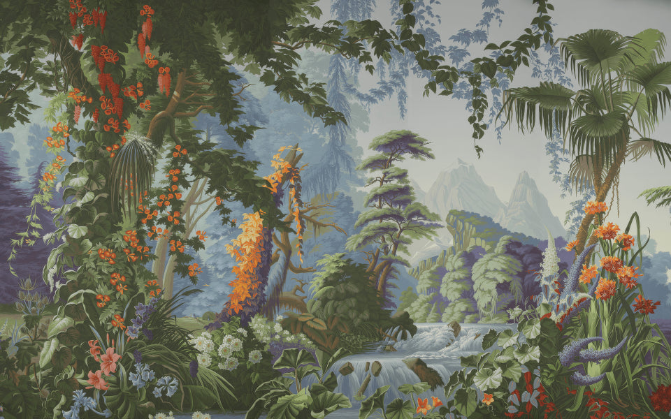 Detailed scenic wallpaper mural featuring exotic vegetation