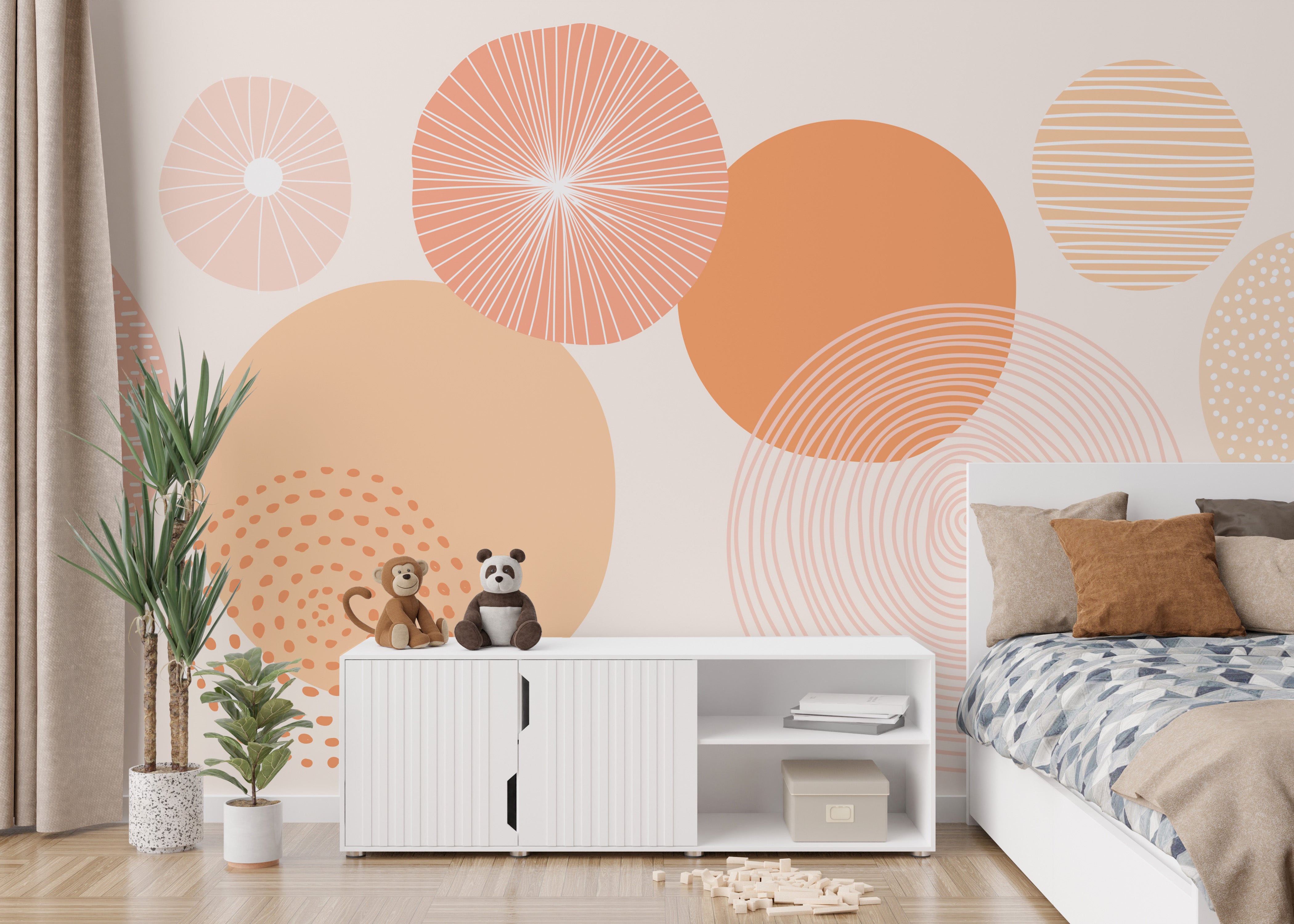 Modern abstract wallpaper with peach circles and a smooth finish.