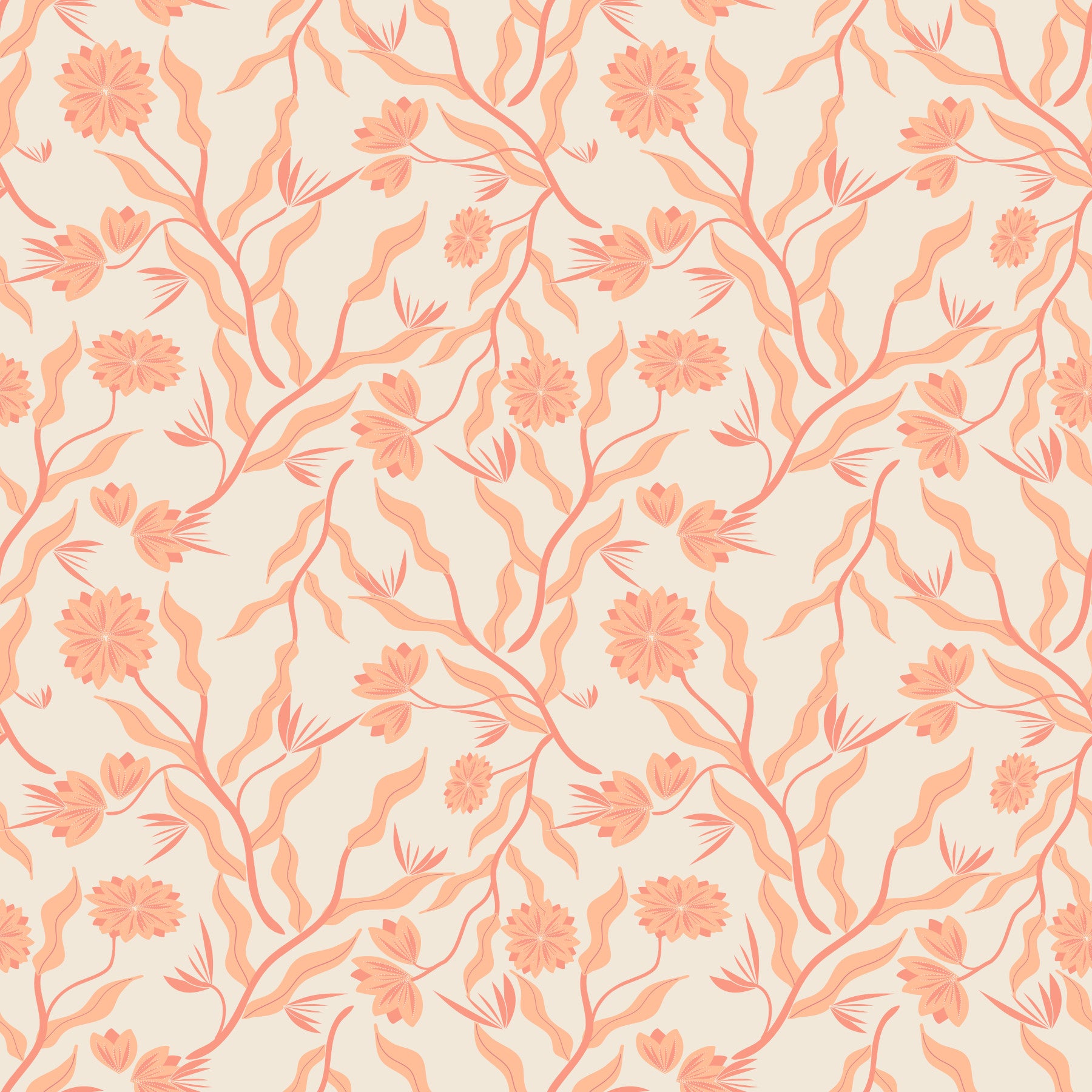 Transform your walls with this tranquil and stylish wallpaper. It showcases an exquisite, repeating pattern of peach-colored stylized floral elements, creating a delicate yet sophisticated aesthetic. The soft and warm tones evoke a feeling of serenity and comfort, making this design ideal for bedrooms, living rooms, or any space where relaxation is paramount. This wallpaper brings a touch of nature's elegance into your home, effortlessly blending with various decor styles. A true artistic expression for any room.