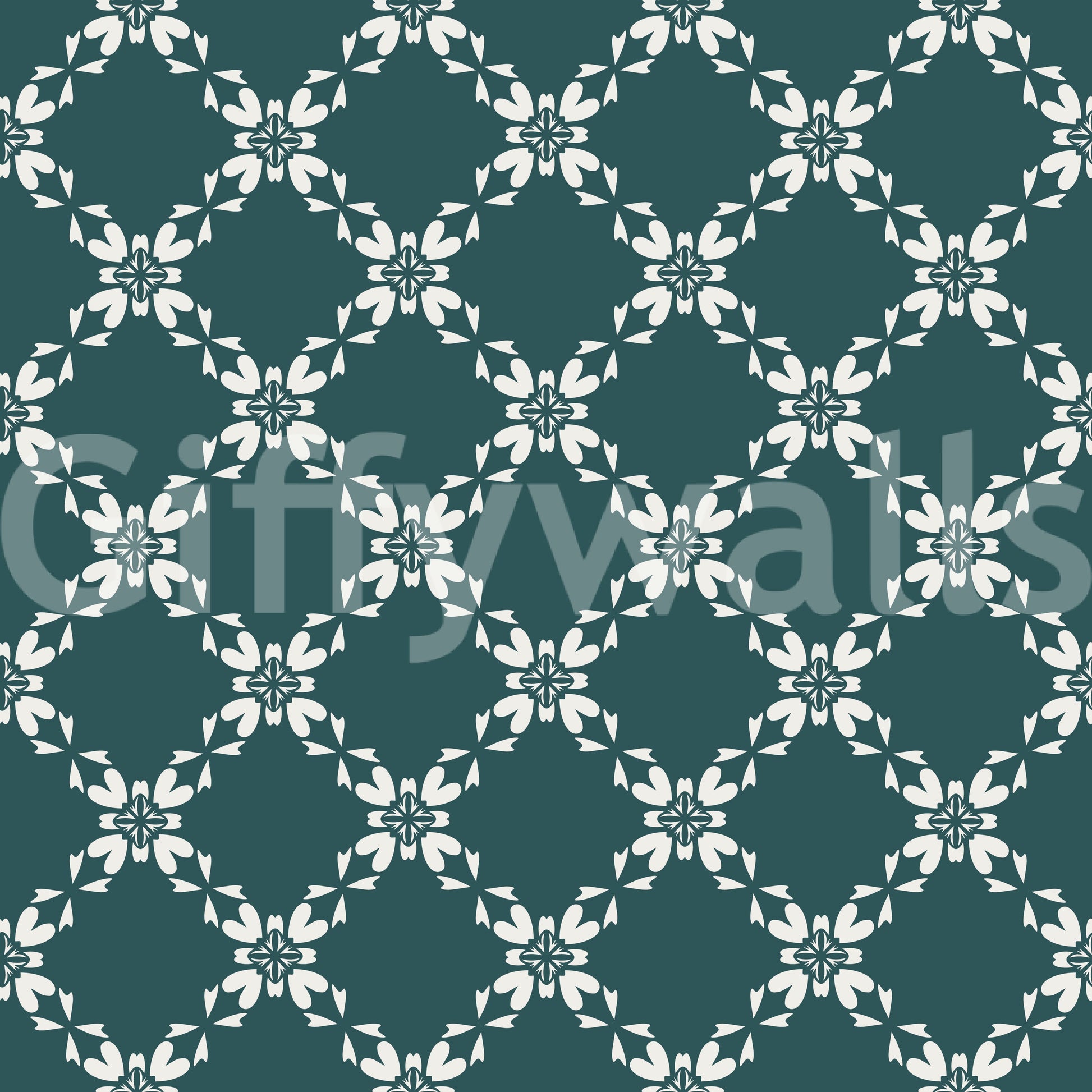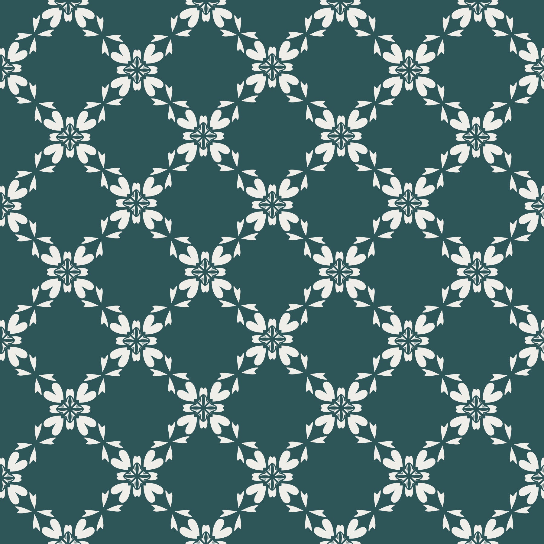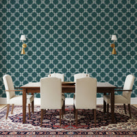 Introduce an air of understated refinement into your home with this elegant wallpaper for walls. The classic floral pattern features stylized petals interconnected in a delicate lattice. A subdued teal background allows the ivory-toned floral motifs to stand out. Use it in bedrooms, living rooms, or hallways to bring visual texture without overwhelming the space. This design works well in traditional or transitional homes where it complements natural light. Enjoy the clean lines and refined aesthetic which elevate the look of any room.