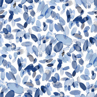 Dive into a serene world of abstract artistry with this 'Petal Watercolor Stains Abstract' wallpaper. Delicate, blue watercolor petals, rendered in shades ranging from soft sky blue to deep indigo, dance across a crisp white background. The organic shapes and soft, slightly blurred edges create a calming, ethereal mood, perfect for a space seeking tranquility and understated elegance. This design offers a sophisticated blend of texture and fluidity, making it ideal for modern and minimalist interiors. The scattered petal motif adds a touch of whimsical charm without overwhelming the overall peaceful ambiance.