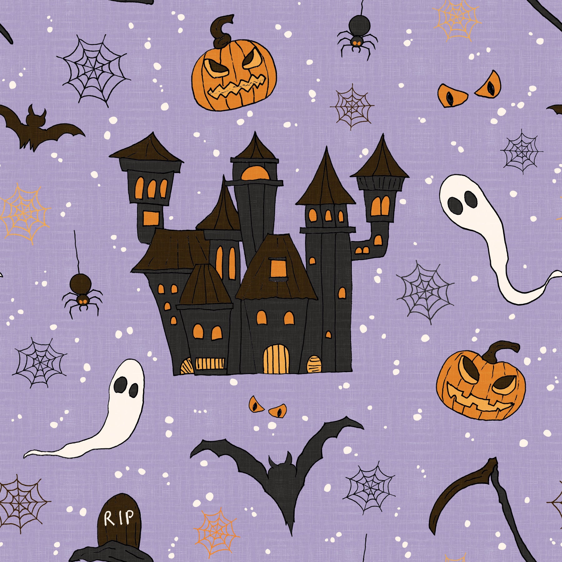 Step into a magical world with the Phantom Castle Foggy Lavender Wallpaper. This beautiful mural wallpaper features a whimsical, hand-drawn scene of a haunted castle, friendly ghosts, and pumpkins, all set against a soft, mysterious lavender and gray palette. It’s the perfect wallpaper for walls to make your living room, bedroom, or kid's room feel more enchanting and unique. The playful design gives your room a sense of quiet magic and classic Halloween charm. This unique wall mural will make your space feel bold and enchanting, with a look that is both spooky and serene.
