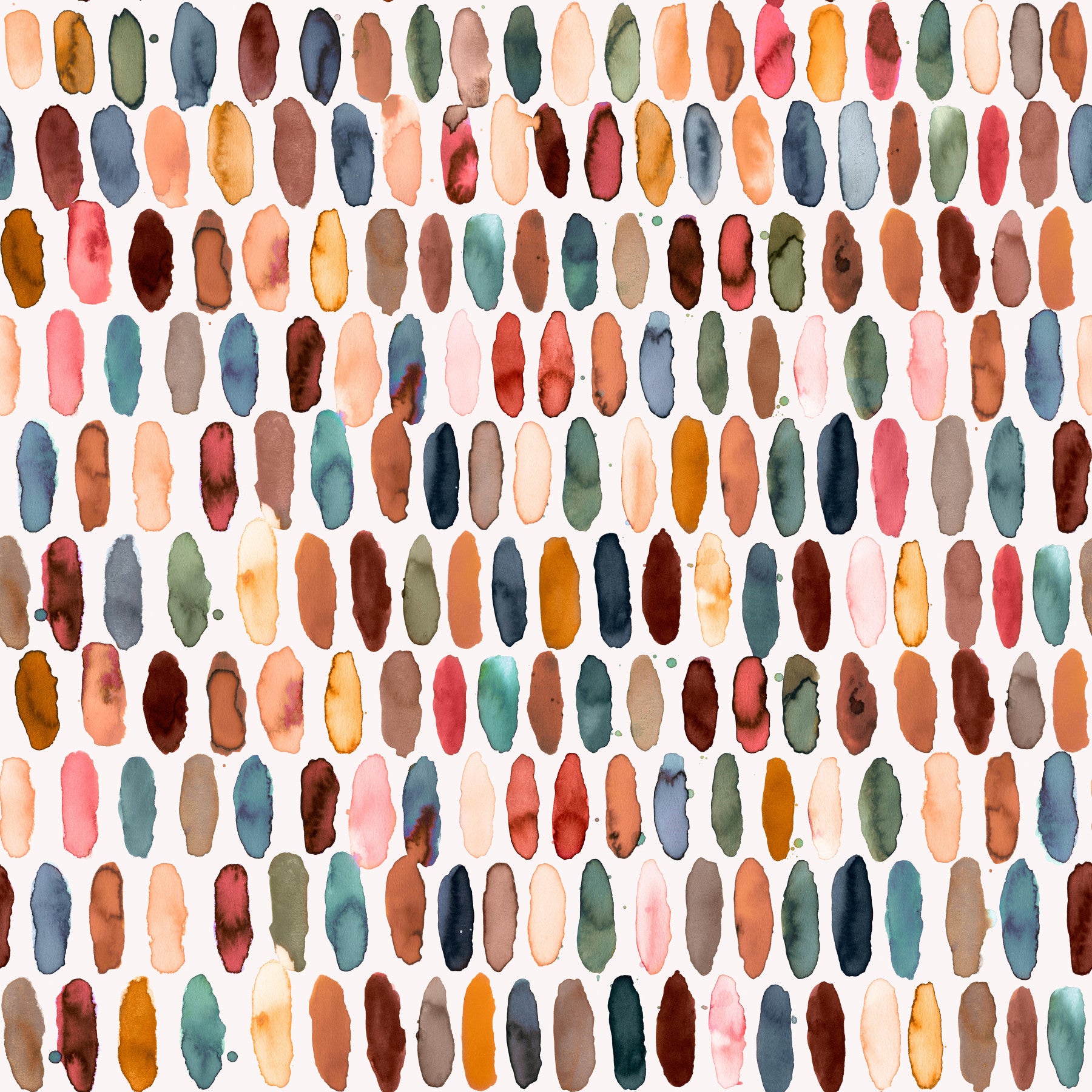 Embrace minimalist elegance with this captivating wallpaper. Pills Copper Scandi Brown features a sophisticated array of hand-painted, oval shapes in a rich palette of earthy Scandi tones. Muted browns, coppers, and hints of teal and dusty rose create a calming, yet visually engaging texture. The organic, slightly imperfect brushstrokes add a touch of artistic charm, making it perfect for those seeking a serene and stylish backdrop for their digital devices. The subtle color variations and repetitive pattern create a sense of understated luxury, ideal for both desktop and mobile use.