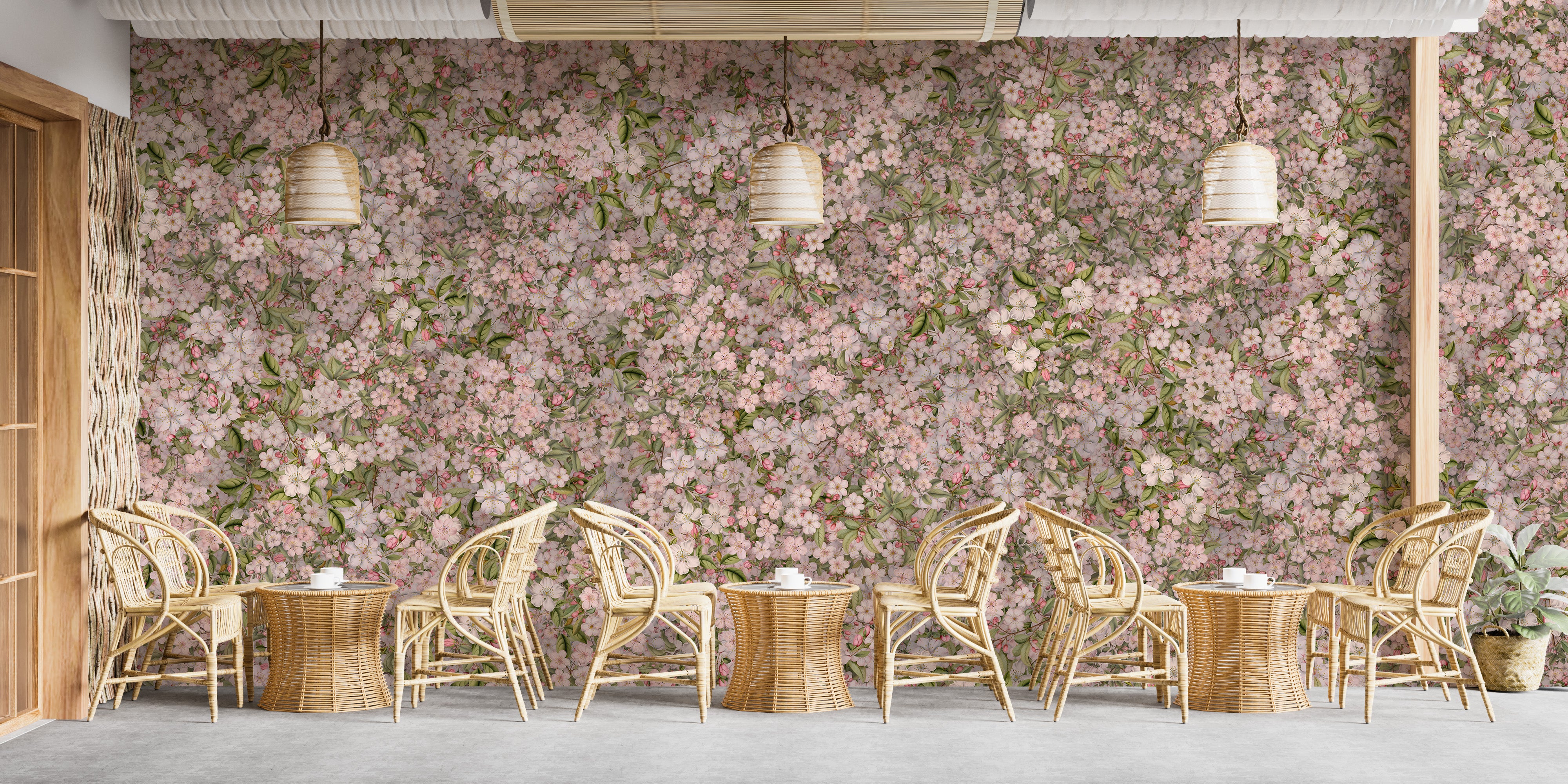 Pink and Green Cherry Blossom Flower Wallpaper Murals
