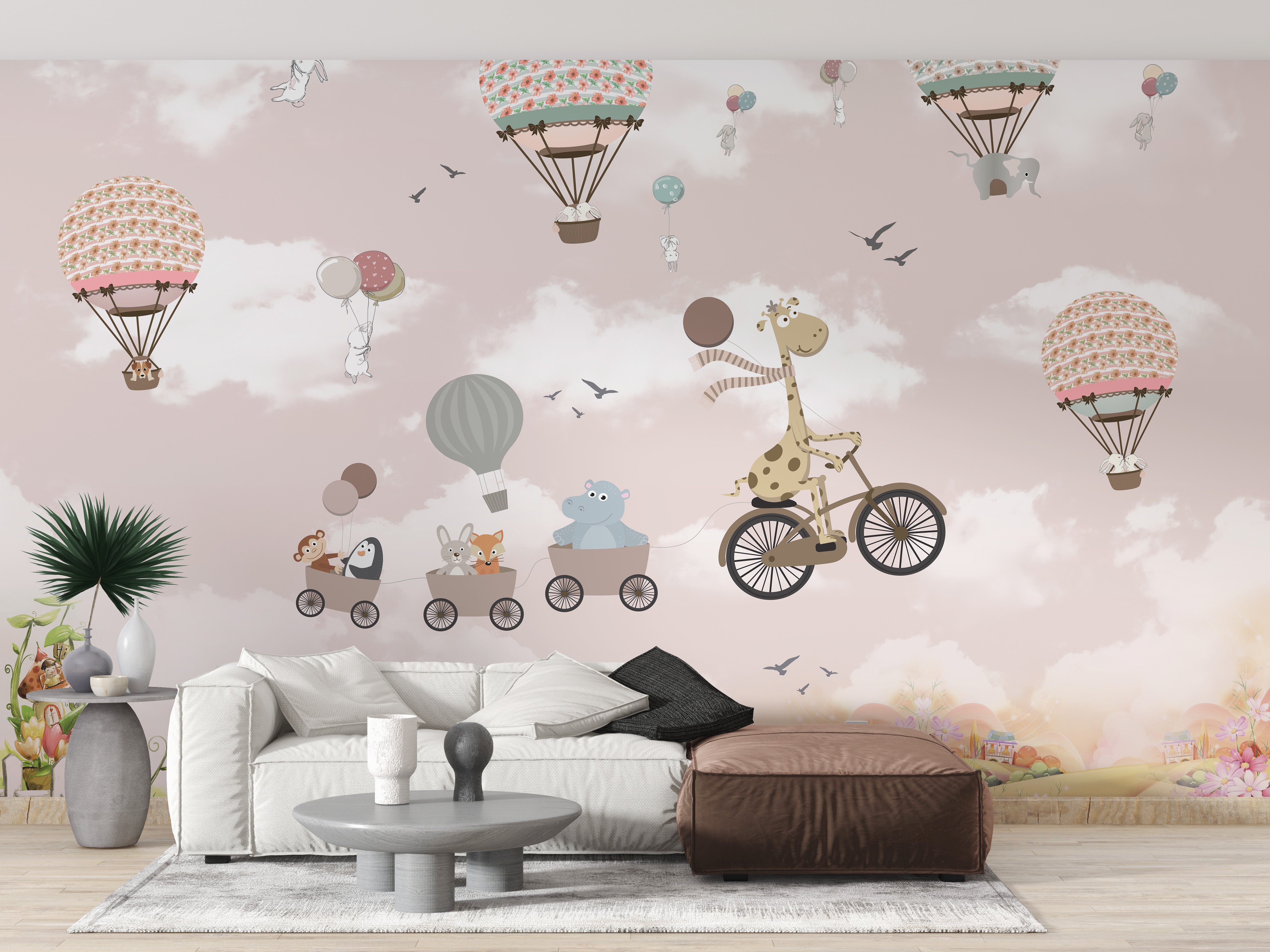 Pink Colour Sky Safari Balloon Animals Wallpaper Mural
