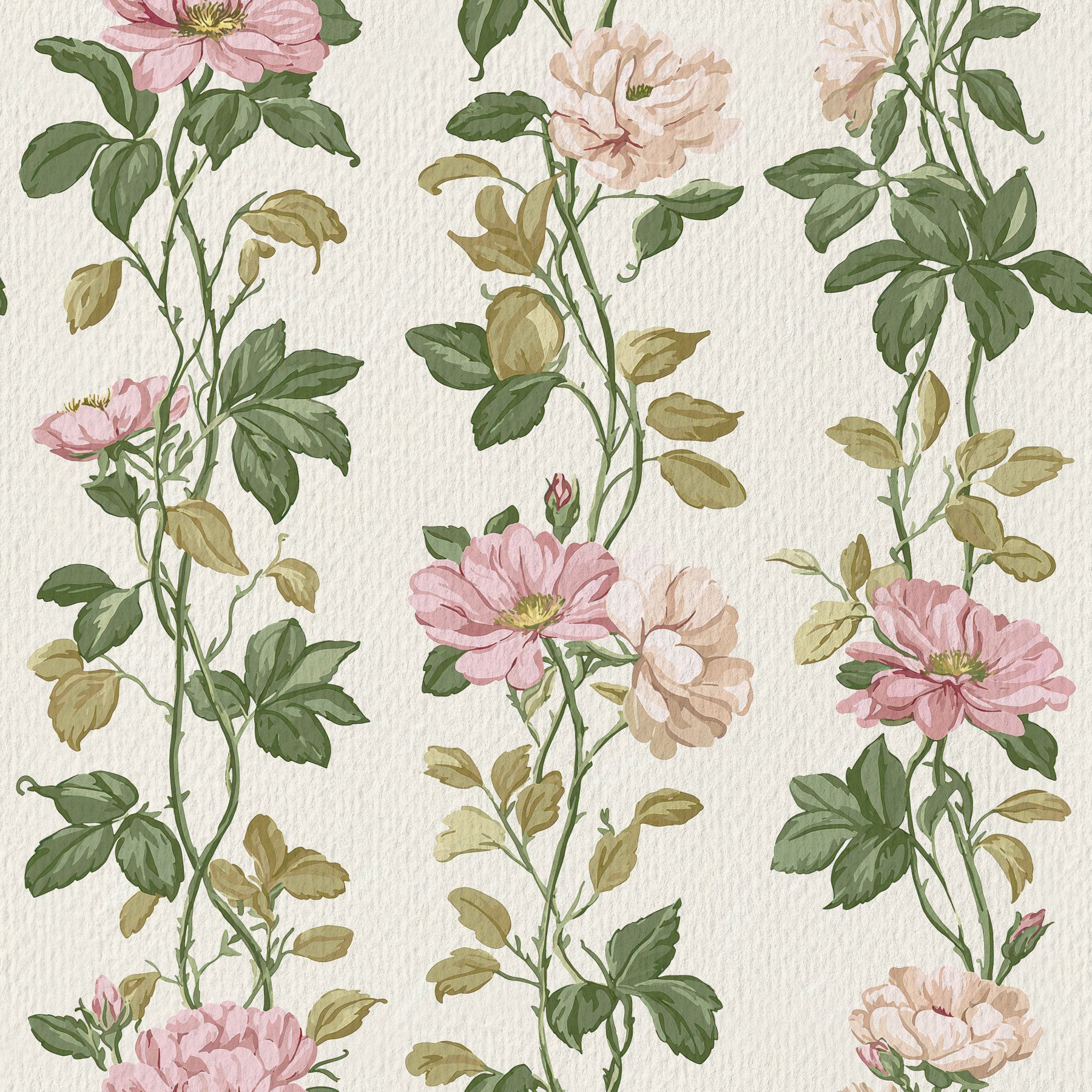 Invite the beauty of a classic garden into your home with this delicate floral wallpaper. The design features climbing vines with blooming pink roses and green leaves against a soft beige backdrop. Its graceful style evokes a calm and inviting atmosphere. This wallpaper for walls is perfect for a bedroom, living room, or dining room where you want to add a touch of timeless charm. The pattern gently complements traditional and modern interiors.