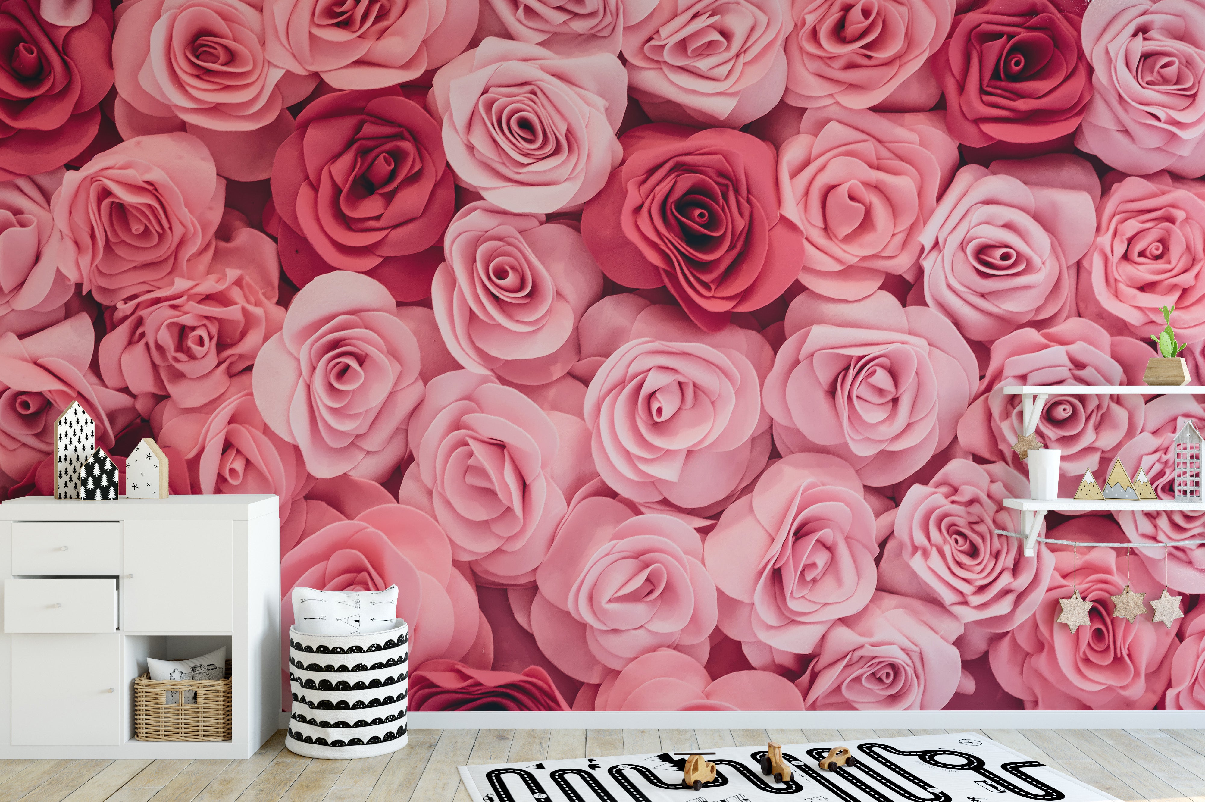 Beautiful pink roses wallpaper mural for timeless elegance.