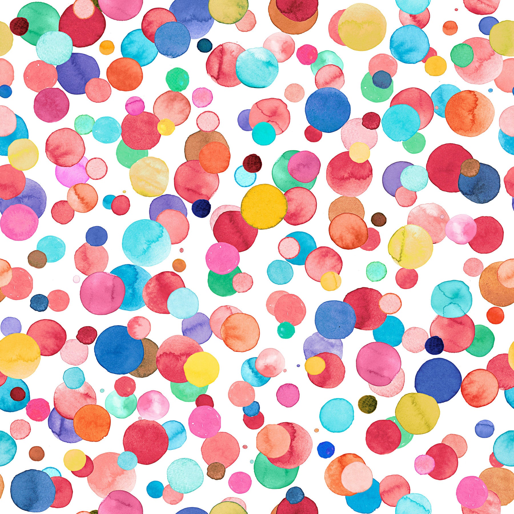 Wallpaper featuring hand-painted watercolor dots in mixed hues.