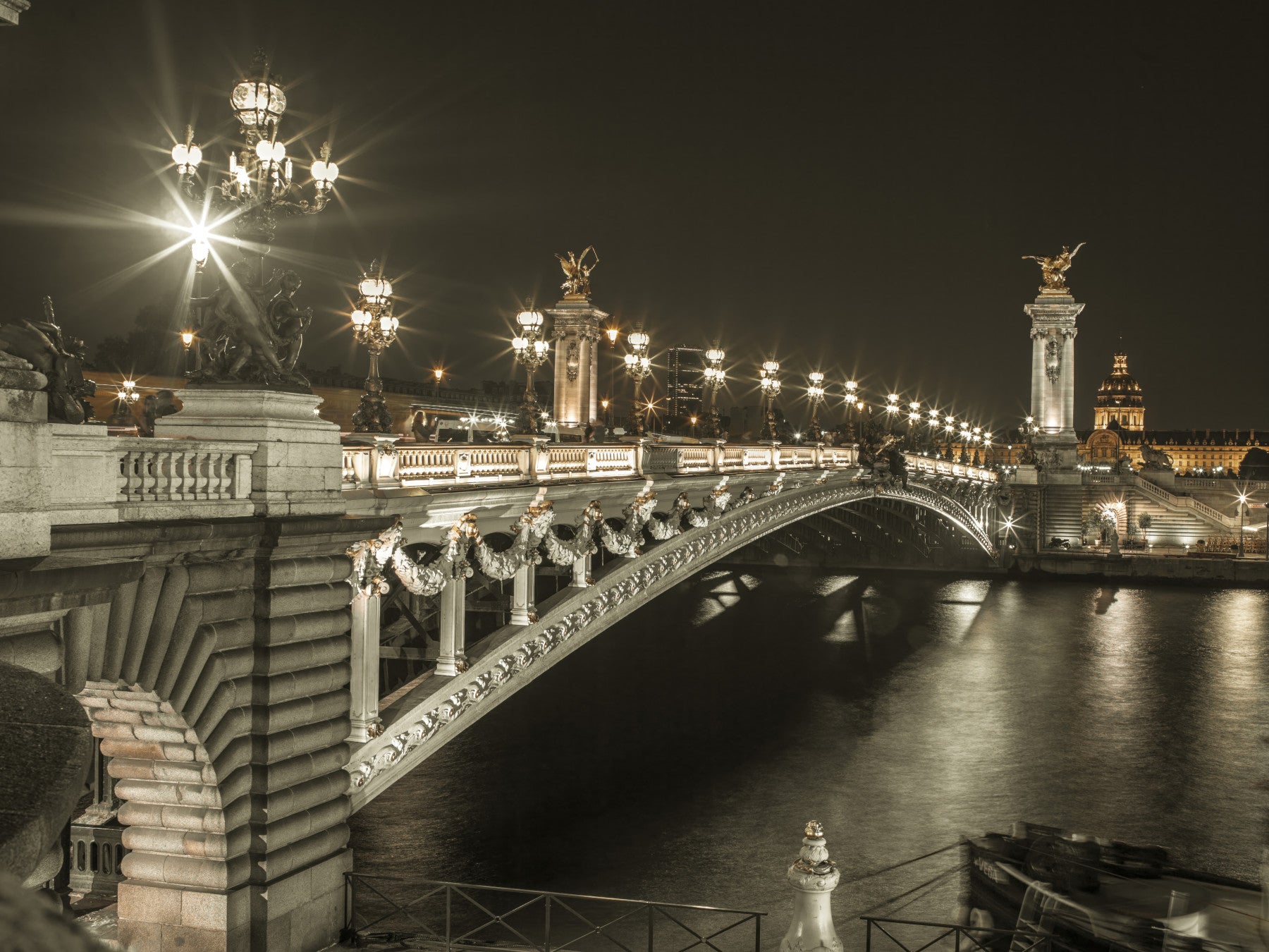 Wall mural of Paris' most elegant bridge at night