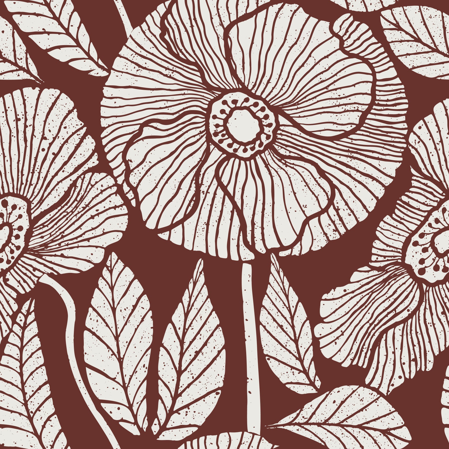 Poppy Floral Modern Burgundy Block Wallpaper⁠