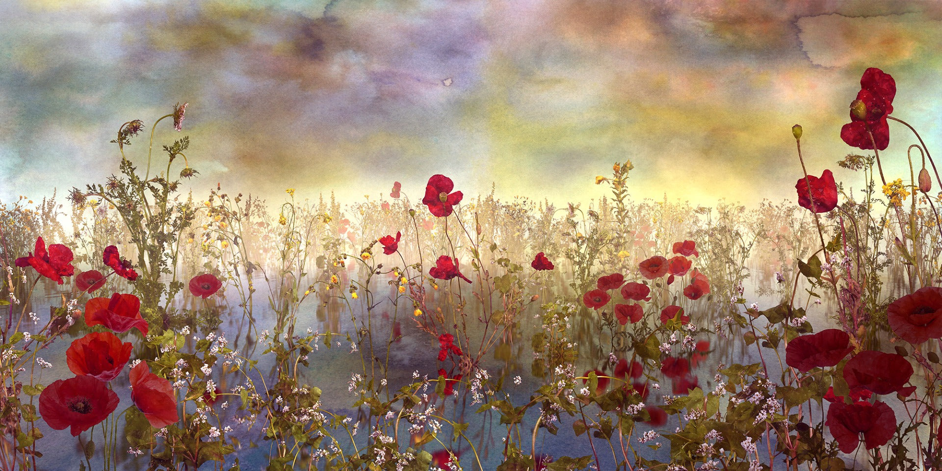 Transform your space with vibrant poppy red flower mural wallpaper.