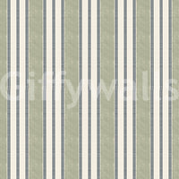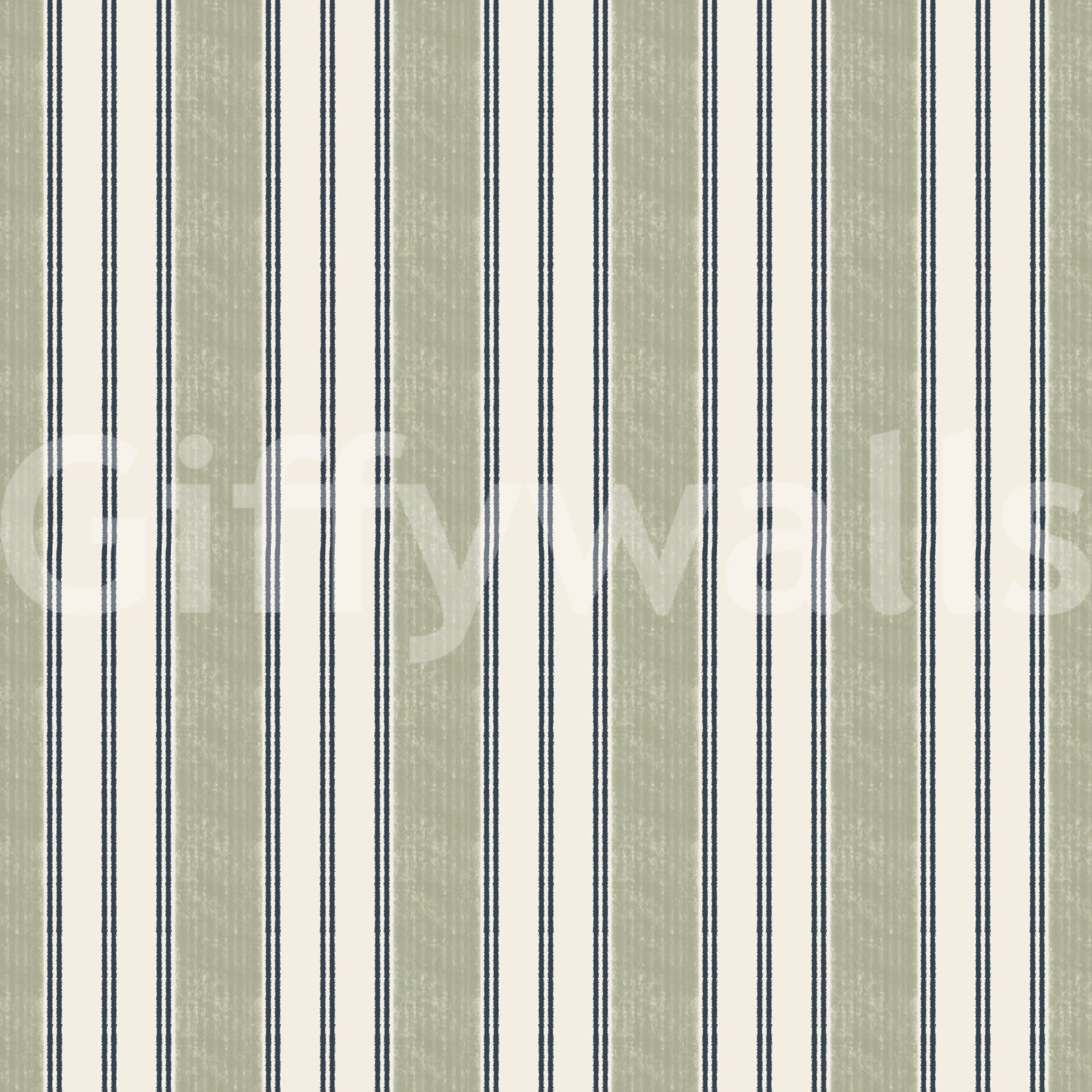 Green ticking stripe wall mural combining heritage charm with contemporary style.