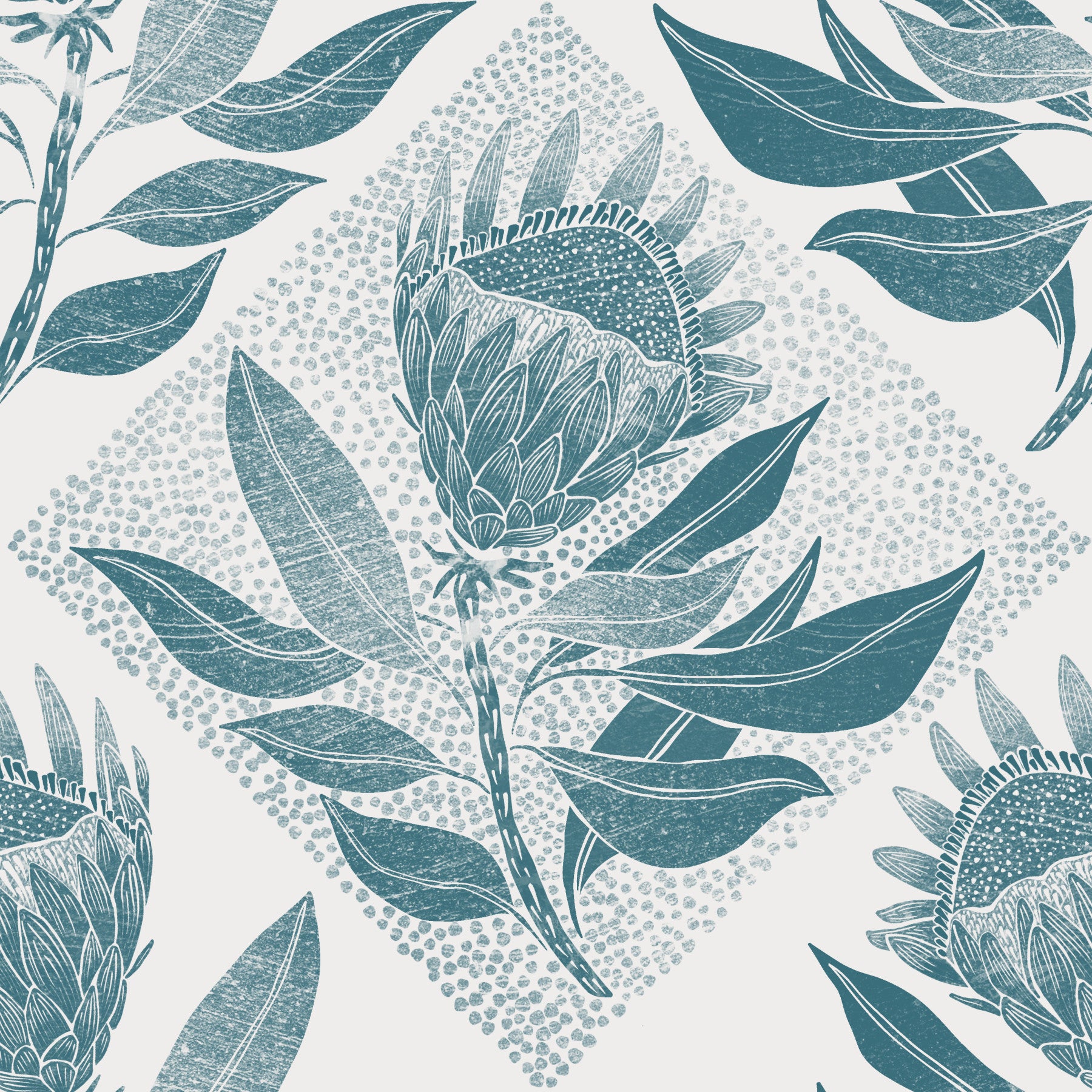 Protea Stamp Turquoise Wallpaper with vibrant floral design