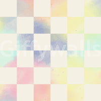 Drift into a dreamlike state with "Psychedelic Check Astral Rainbow." This wallpaper presents a mesmerizing checkered pattern, each square filled with a soft, pastel watercolor wash. The colors blend seamlessly, creating a tranquil yet vibrant aura reminiscent of a celestial rainbow. Subtle speckles of color add a touch of ethereal magic, enhancing the overall psychedelic vibe. Perfect for those seeking a calming yet visually stimulating backdrop for their digital devices, this design evokes a sense of peace and wonder, transporting you to a dreamy astral plane.