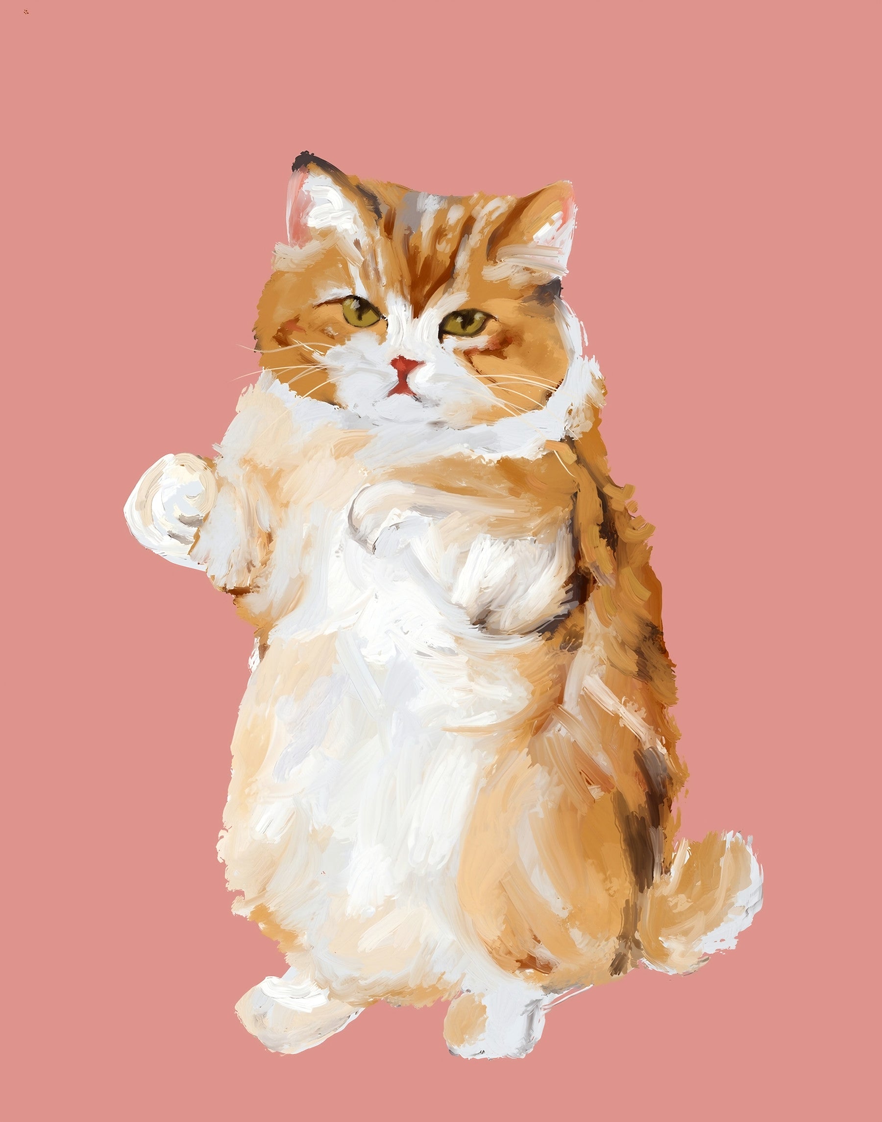 The Purrfectly Perfect furry handpainted oil painting cat Wall Mural brings a sense of warmth and personality to your modern apartment. This design showcases a fluffy ginger cat rendered with thick, visible brushstrokes that provide a classic oil painting appearance. The soft pink background provides a beautiful contrast to the orange and white tones of the feline, making it a standout piece of wall decor. Each detail, from the expressive eyes to the textured fur, is captured in high resolution to ensure a stunning visual impact. This feline art piece is an excellent choice for cat lovers seeking a unique and hand-drawn aesthetic for their interior surfaces.