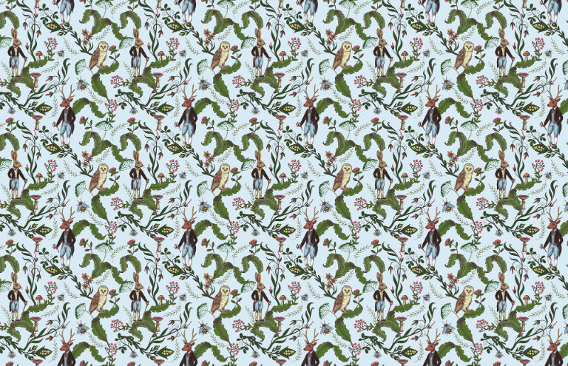 Introduce a touch of nature into your space with our rabbit & owl with green leaves wallpaper. This charming design features playful rabbits and wise owls nestled among lush green foliage, bringing a vibrant and lively atmosphere to any room. The intricate details and vivid colors of the leaves wallpaper create a captivating backdrop, perfect for adding a sense of whimsy and enchantment to your home decor.