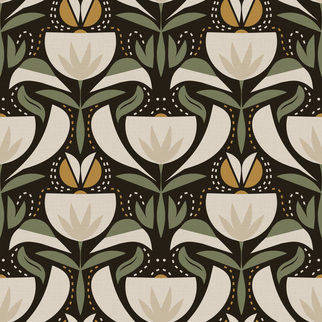 A peaceful flower design mural on decorative wallpaper.