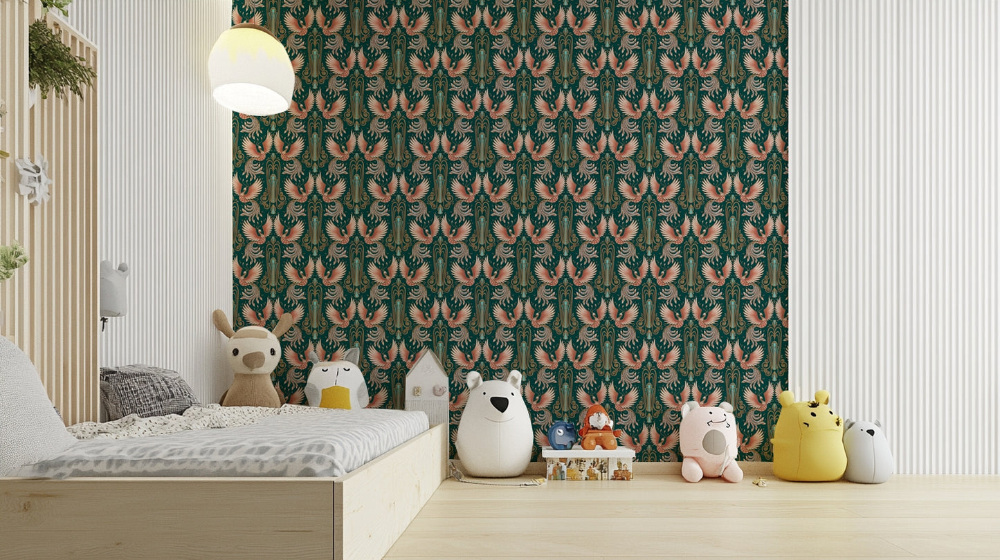 Embrace transformation and renewal with a stunning design featuring the rebirth of a phoenix. This captivating wallpaper brings vibrant colors and intricate patterns to your walls, creating a serene yet striking environment. Perfect for adding a touch of mythology and inspiration to your home, it's ideal for creating a focal point in any room. Let your space resonate with the powerful symbolism of rebirth and beauty, making every moment at home feel truly special.