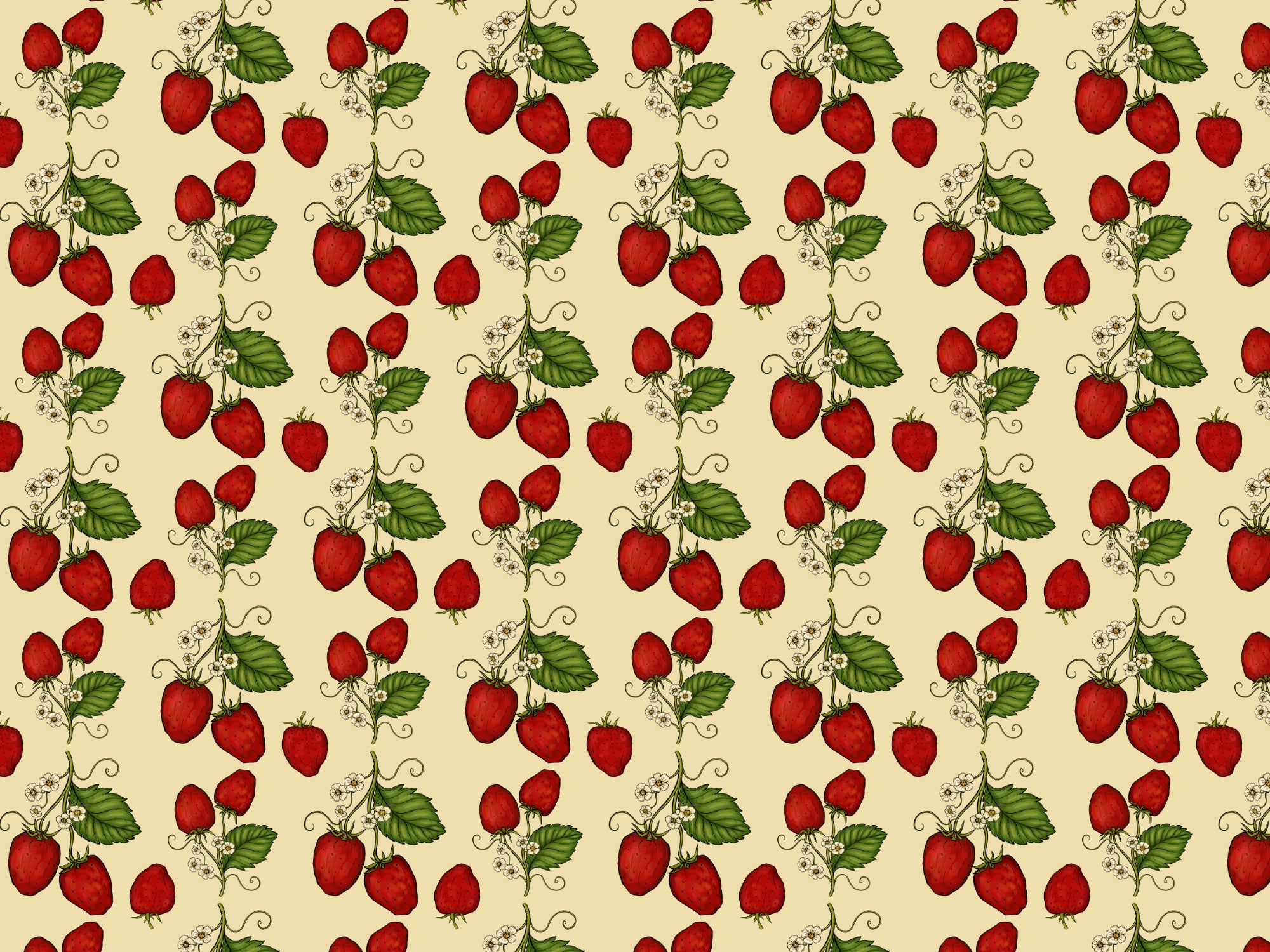 Bold red strawberry vines wallpaper for cheerful wall decor.