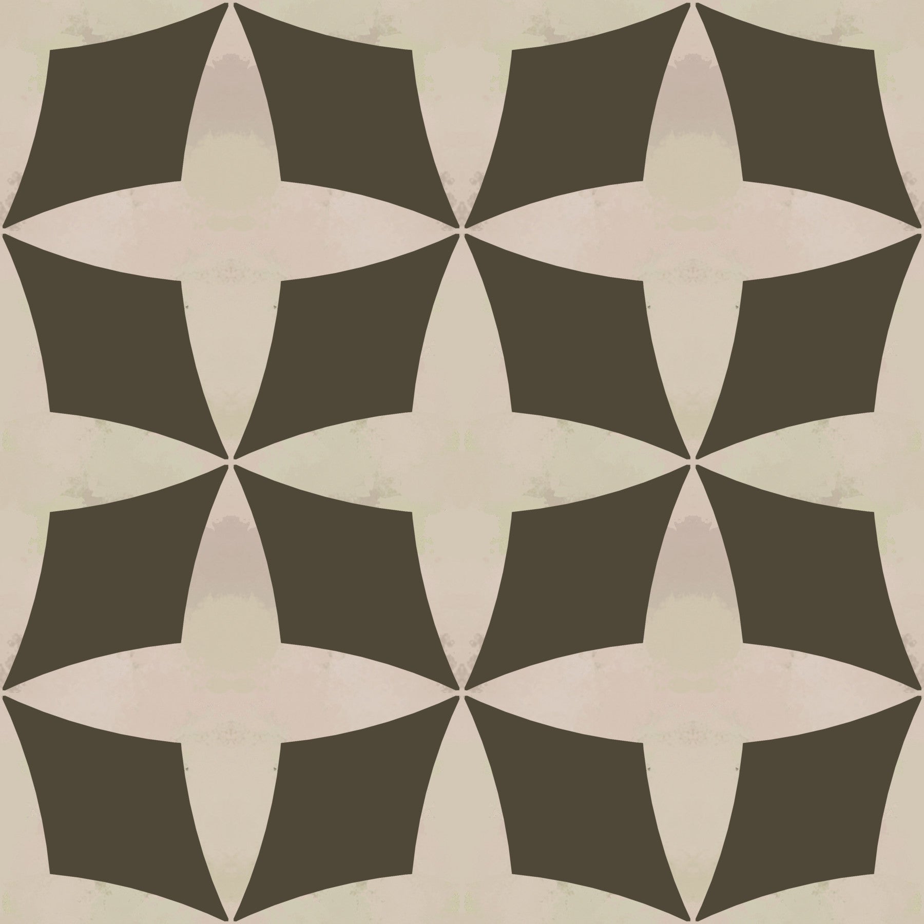 Bold repeating wallpaper motif in warm, muted earth shades.