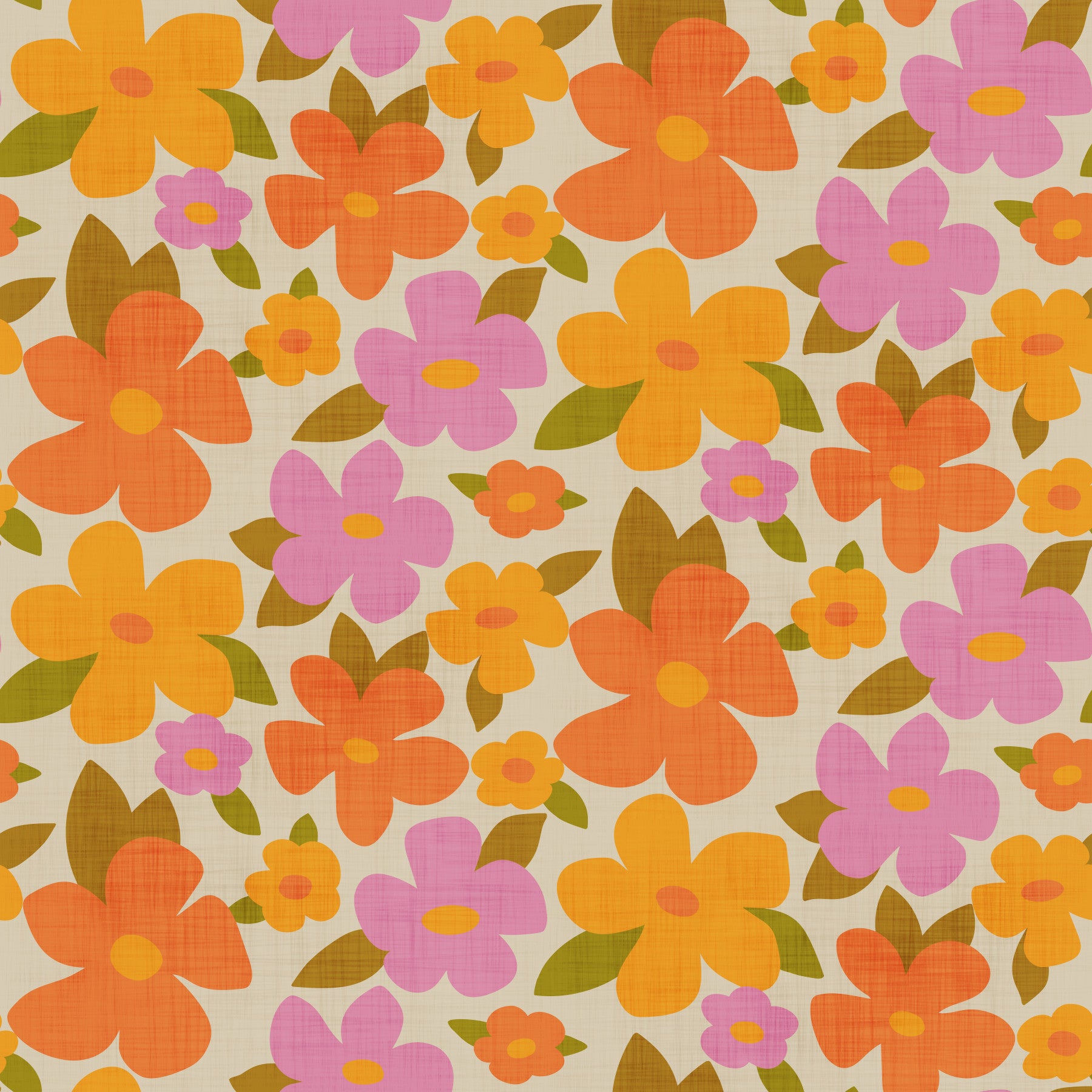 Retro Bright Flowers in Orange Pink Yellow