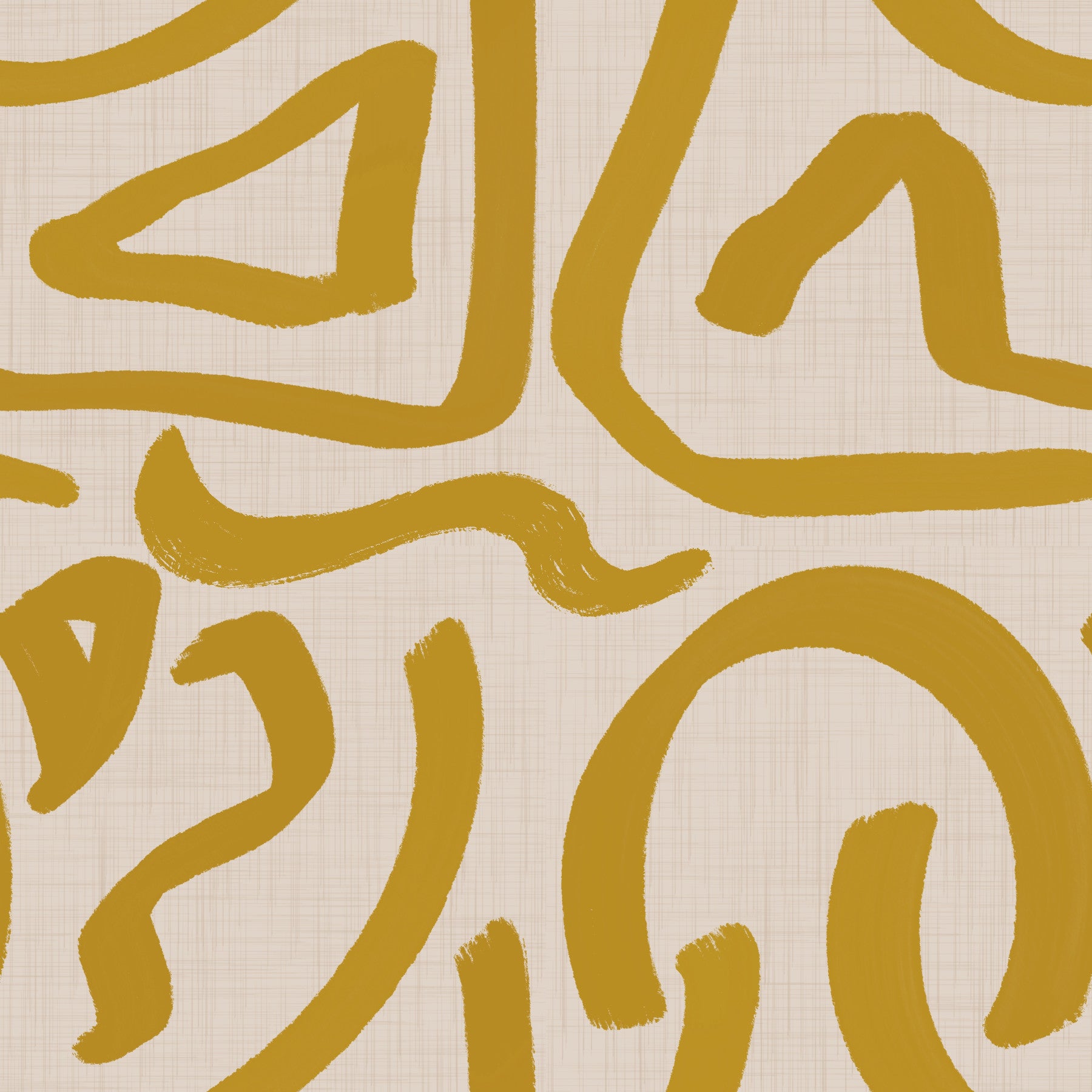 Embrace mid-century modern style with this vibrant wallpaper. Bold, mustard-yellow brushstrokes dance across a subtle beige linen texture, creating a dynamic yet calming abstract pattern. The playful scribbles and organic shapes evoke a sense of retro charm and artistic freedom, perfect for adding a touch of vintage sophistication to any digital device. This design blends the energy of abstract art with the muted elegance of mid-century aesthetics, resulting in a wallpaper that is both visually arresting and effortlessly stylish. The textured background adds depth and visual interest, enhancing the overall retro feel. Perfect for those who appreciate unique, sophisticated designs with a hint of nostalgia.