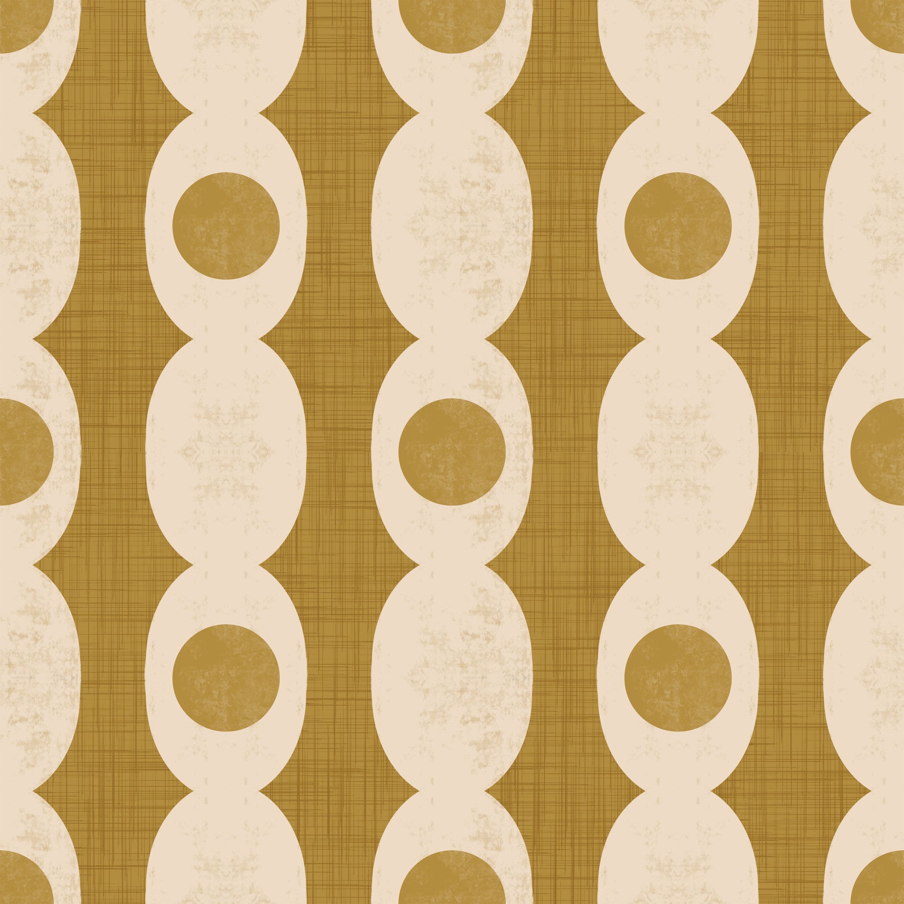 Bring a touch of mid-century style to your home with this geometric design. Interlocking oval shapes create a modern pattern in warm beige and tan. The textured backdrop adds depth. Use this wallpaper for walls to bring a retro charm to a living room or office. The muted palette is a great complement to any interior. Consider this pattern for a contemporary touch in your dining room.