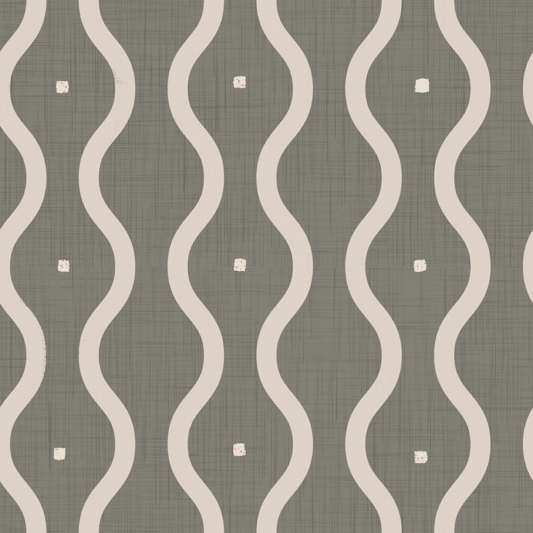 Immerse yourself in the soothing, rhythmic charm of "Retro Rhythm Taupe." This captivating wallpaper evokes a sense of vintage cool with its flowing, undulating lines set against a textured taupe backdrop. The design features elegant, off-white wave-like patterns that cascade down the surface, creating a gentle, almost hypnotic motion. Scattered within the taupe field are small, distressed squares, adding a touch of playful imperfection and enhancing the overall retro aesthetic. This wallpaper is perfect for creating a serene and stylish atmosphere in any room. Its neutral color palette ensures versatility, seamlessly blending with a wide range of interior design styles. Embrace the understated elegance and rhythmic flow of "Retro Rhythm Taupe" to transform your space into a haven of calm and vintage-inspired sophistication. The slightly distressed texture adds to the classic feel, giving the impression of a well-loved, time-honored design.