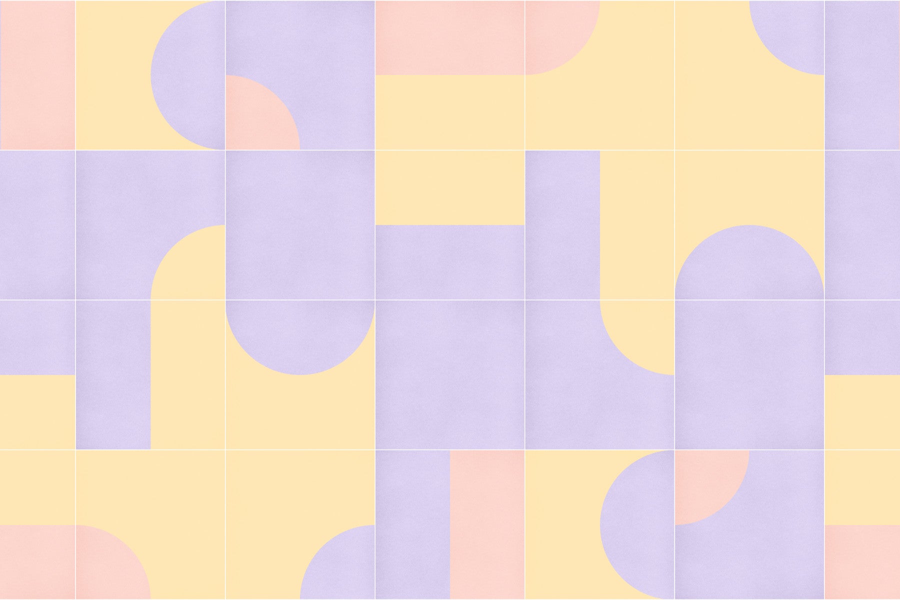 Step back in time with Retro Tiles 17 a delightful fusion of geometric shapes and a pastel color palette, reminiscent of mid-century modern design. This wallpaper features a grid of stylized 'tiles' in soft lilac, warm peach, and mellow yellow hues, creating a visually engaging and soothing aesthetic. The interplay of squares and semi-circles evokes a sense of playful sophistication. The textured surface adds depth and tangibility, bringing a subtle tactile quality to your screen. Perfect for those who appreciate retro vibes with a contemporary twist, 'Retro Tiles 17' will transform any digital space into a haven of vintage charm and artistic flair, instantly adding character and warmth to your device. Give your screen a touch of retro chic and let this geometric symphony brighten your day.