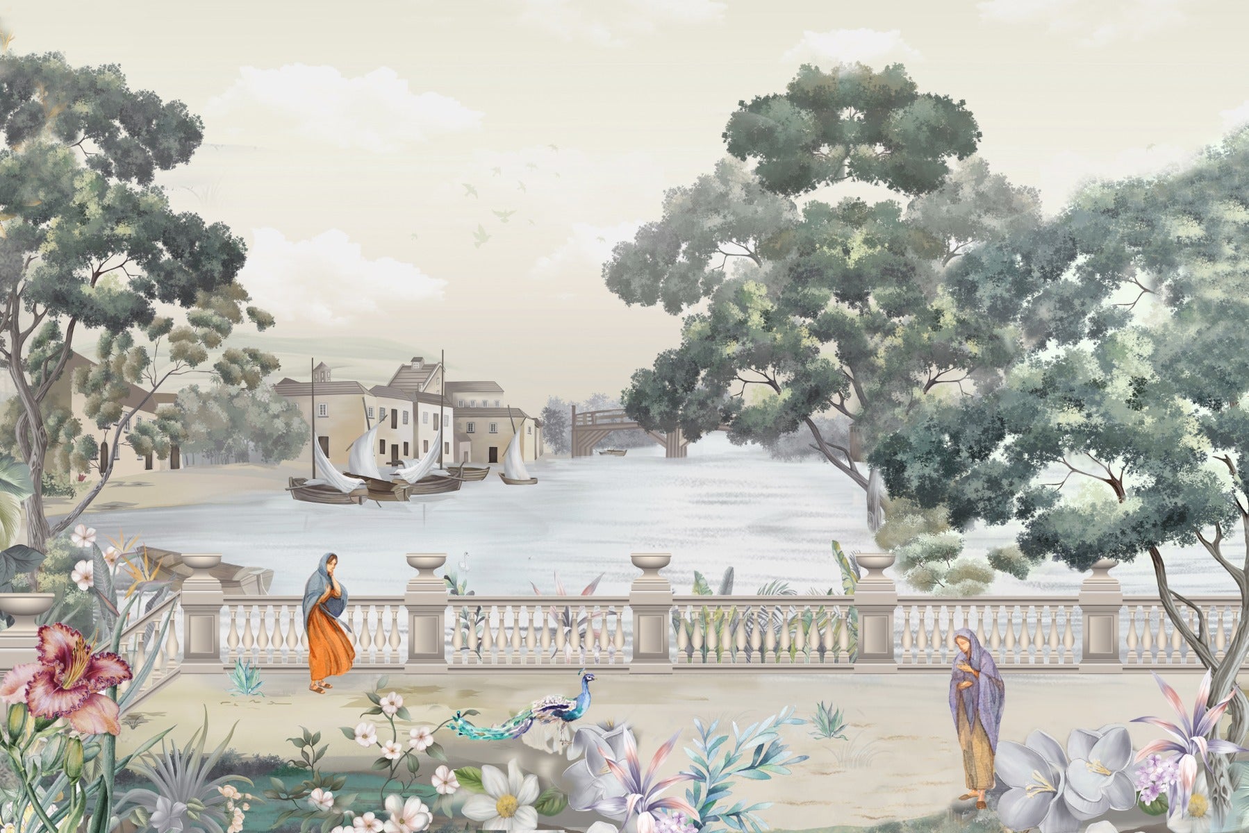 Adorn your walls with the charm of the past and the serenity of a riverside scene with our retro vintage river city wallpaper murals. This exquisite piece showcases a timeless Indian cityscape, viewed from the tranquility of its waterfront, rendered in meticulous detail and earthy, coffee-inspired hues. Crafted for versatility, its white and brown palette harmonizes with diverse decor styles, making it an ideal choice for both bedrooms and studies. The retro vintage peel and stick wallpaper for walls promises not only ease of application but also an enduring allure that captures the essence of both river wallpaper and city wallpaper genres. Delight in the refined ambiance this mural brings to your space, marrying historical elegance with contemporary ease.