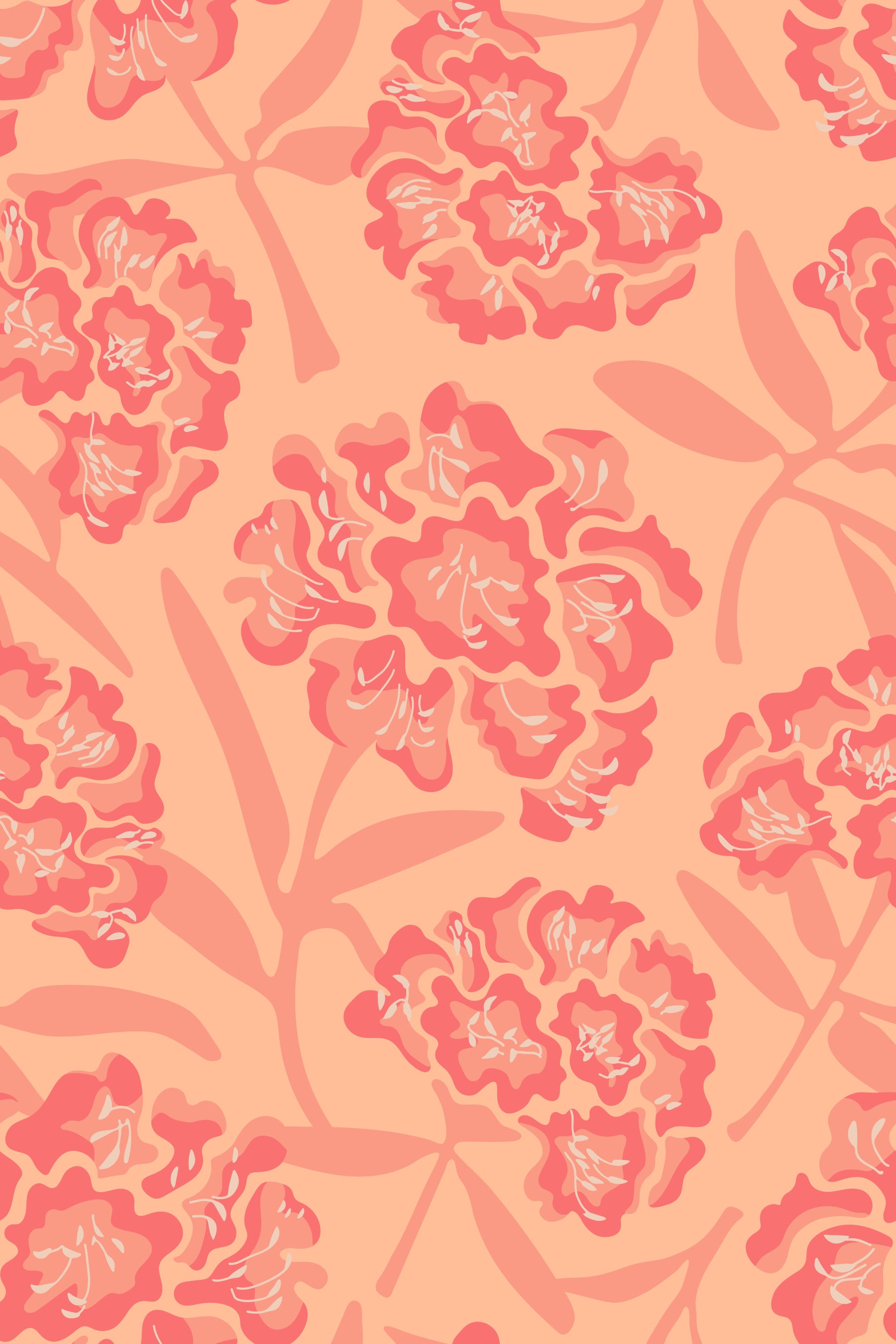 Rhododendrons Retro Floral Coral Orange Peach Wallpaper⁠