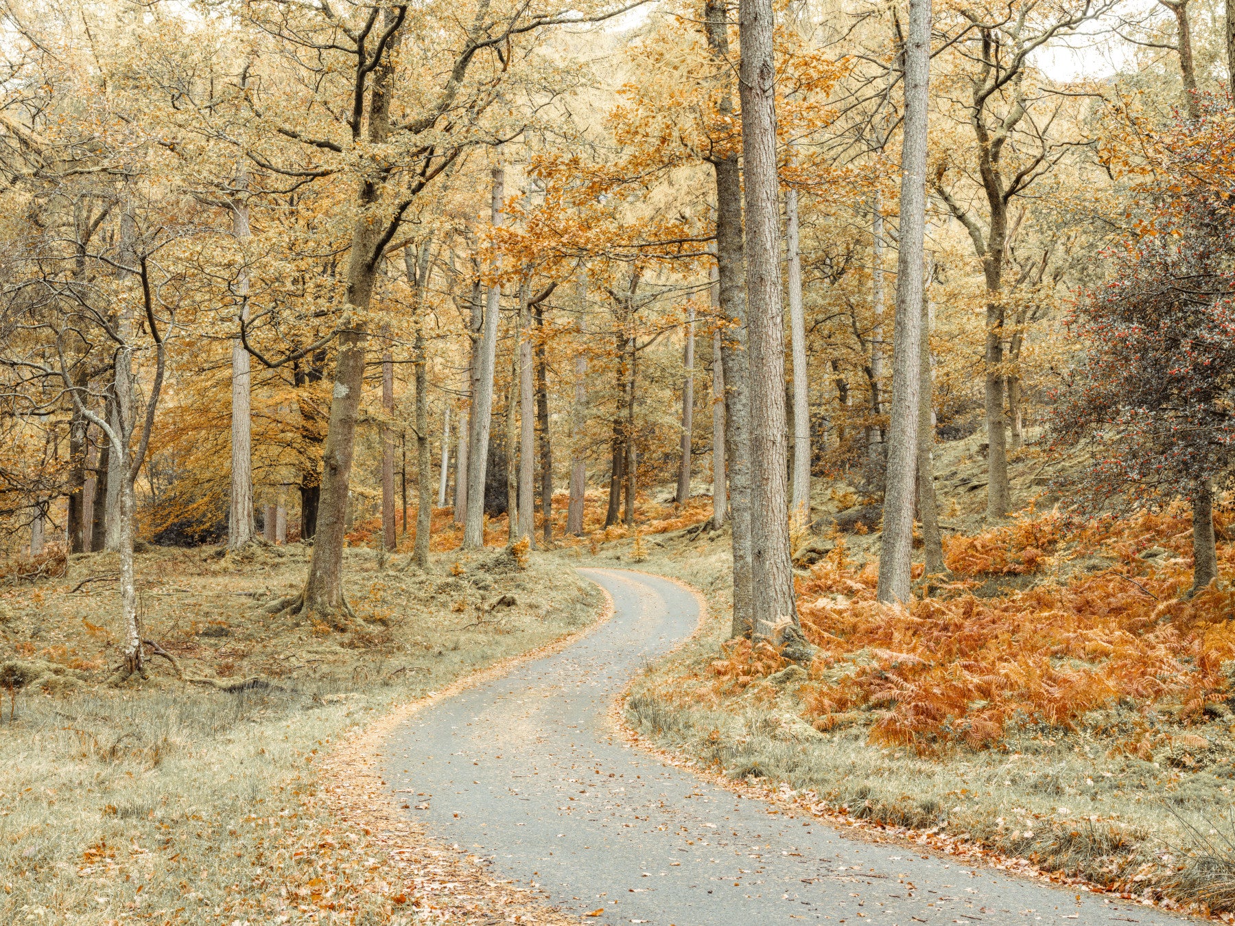 Autumn hues on forest road wall design