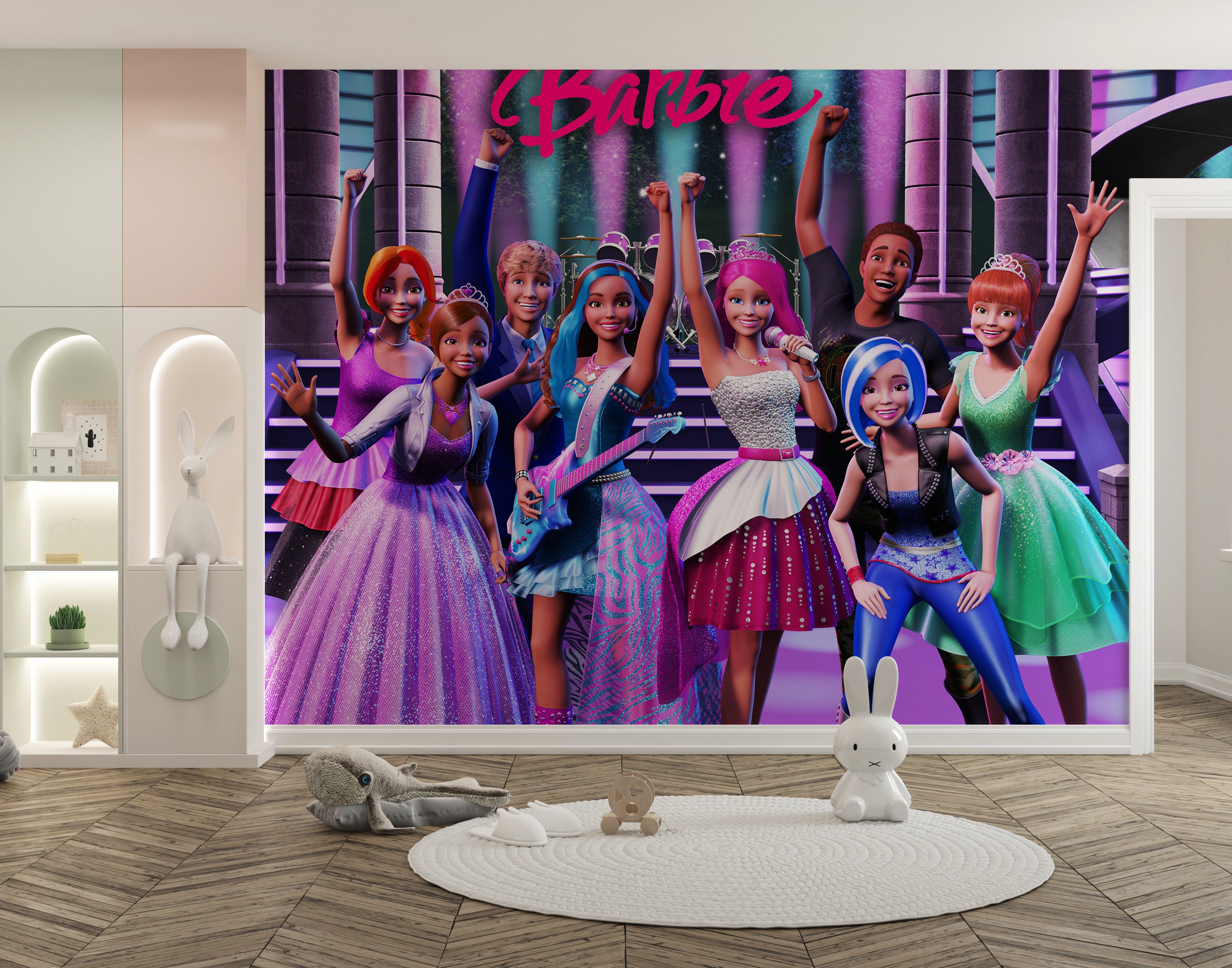 Rockstar Princess Barbie Wallpaper Murals are the perfect way to transform any room into a stylish oasis. Choose from Kids Room, An array of unique images, vibrant colors, and modern textures that will help create a look that is completely your own! With easy installation methods with peel and stick material and the ability to customize your space with our one-of-a-kind designs, you will be able to create the perfect atmosphere for any occasion in no time. Let Rockstar Princess Barbie Wallpaper Murals help you turn your home into a work of art—because sometimes walls just need a little more life!