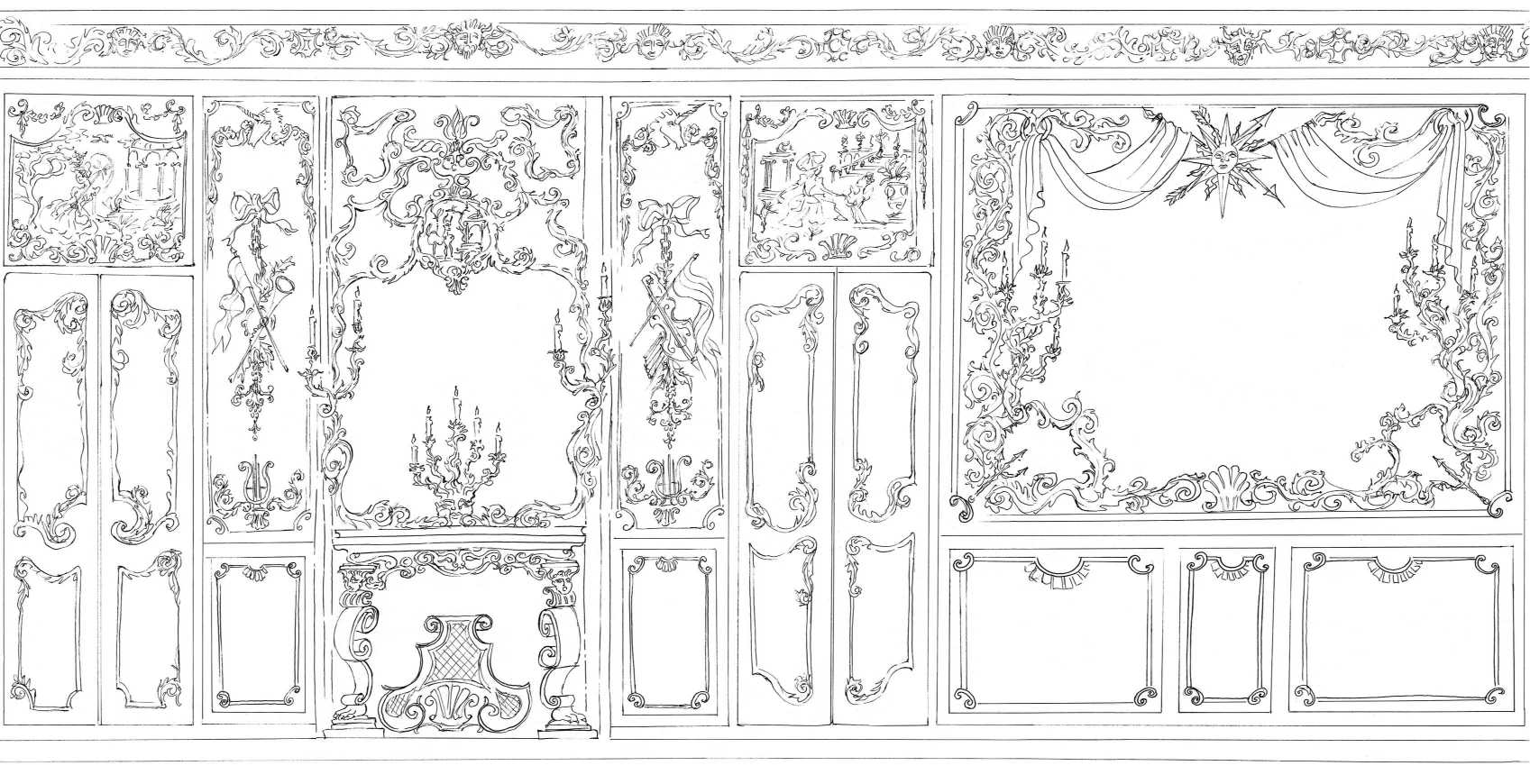 Elegant Rococo wall paneling wallpaper with vintage charm