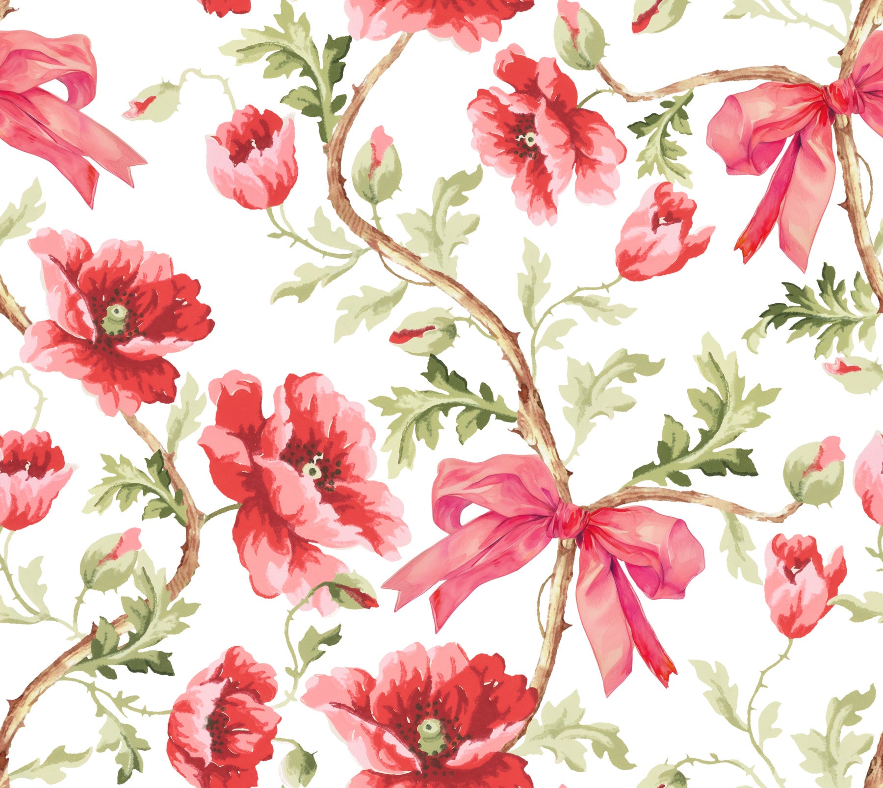 Romantic Preppy Poppy Blooms & Bows Wallpaper⁠