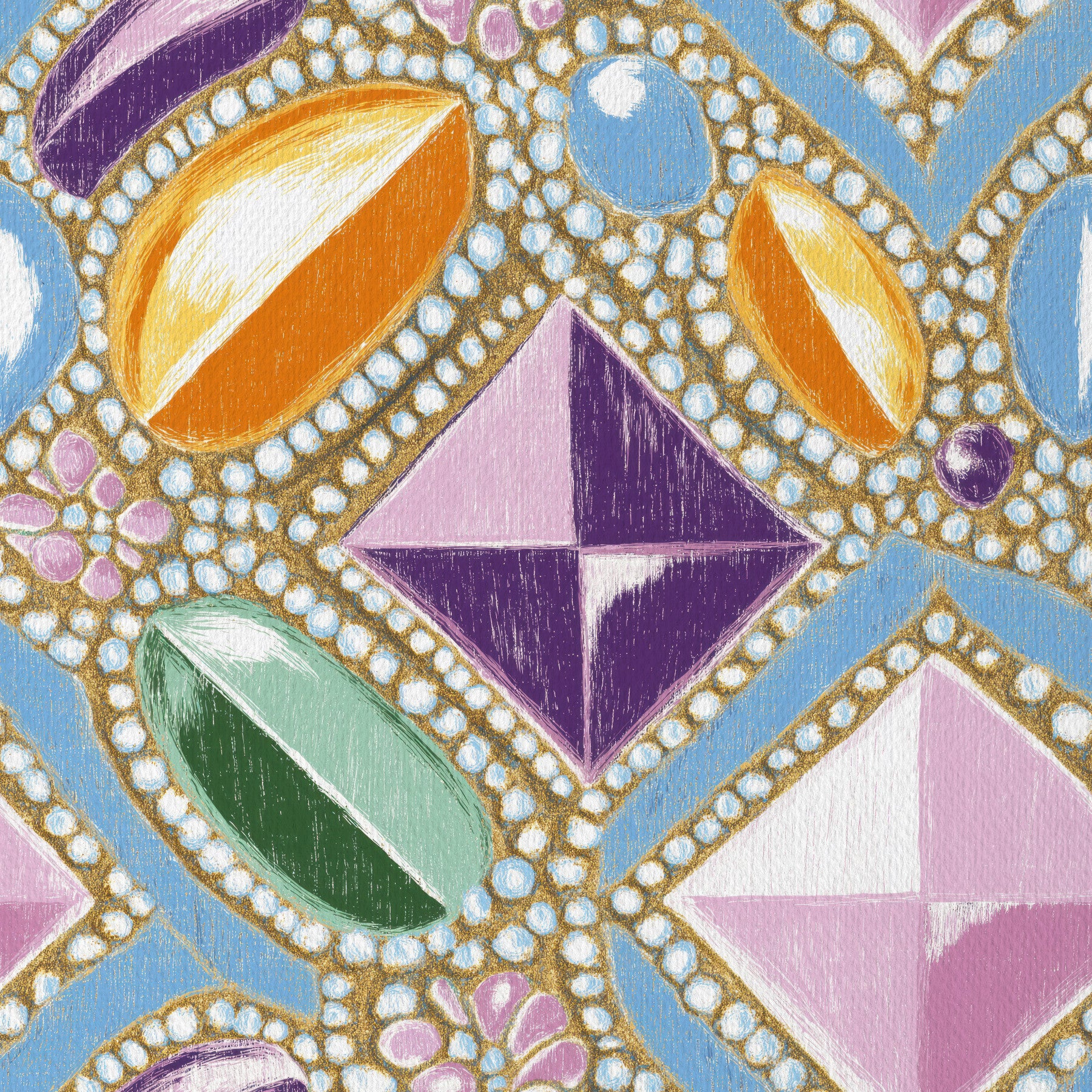 Pink Gemstone Pattern Wallpaper – Soft, pastel-inspired wallpaper with jewel-like textures and refined geometric patterns.