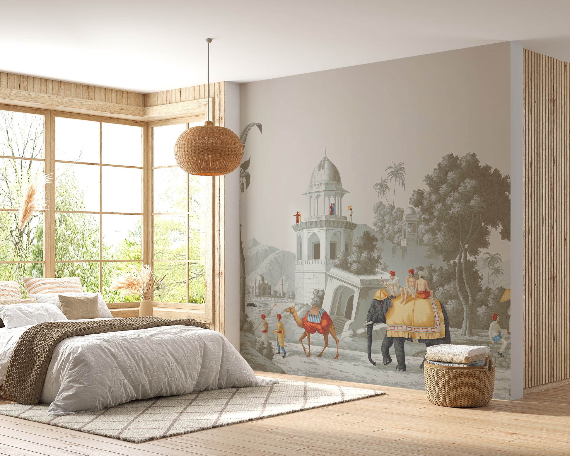 Royal Mughal forest-themed wall mural