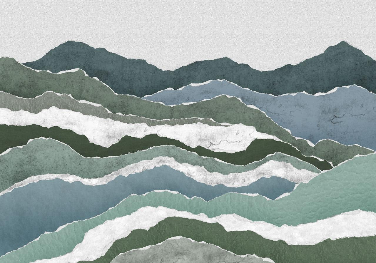 Discover the enchanting Royal Peaks watercolor mountain wallpaper mural. This mural features layered mountains in serene shades of green and blue, creating a stunning landscape for any room. Its unique watercolor design adds depth and character, making your walls come alive. Ideal for living rooms, bedrooms, and offices, this mural is an effortless way to infuse nature's beauty into your home. The detailed craftsmanship and artistic touch ensure that every glance offers a new perspective on its beauty. Embrace the artistry and quality of this watercolor mountain wallpaper. Its design resonates with nature lovers and art enthusiasts alike, providing a peaceful escape within your own walls.