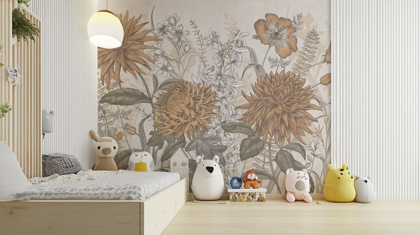 Rustic botanical floral wall mural
