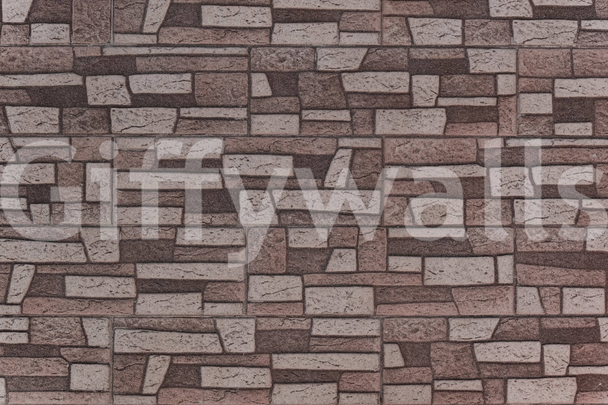 Embrace a touch of rustic elegance with this brickwork-inspired wallpaper. It displays interlocking shapes and shades of brown, taupe and cream. This wallpaper for walls brings texture and visual interest to any room. Its versatile design suits various styles, from farmhouse to industrial. Imagine it in a living room, dining area, or even a hallway. It creates a snug and inviting atmosphere. The neutral palette coordinates effortlessly with other decorative elements.