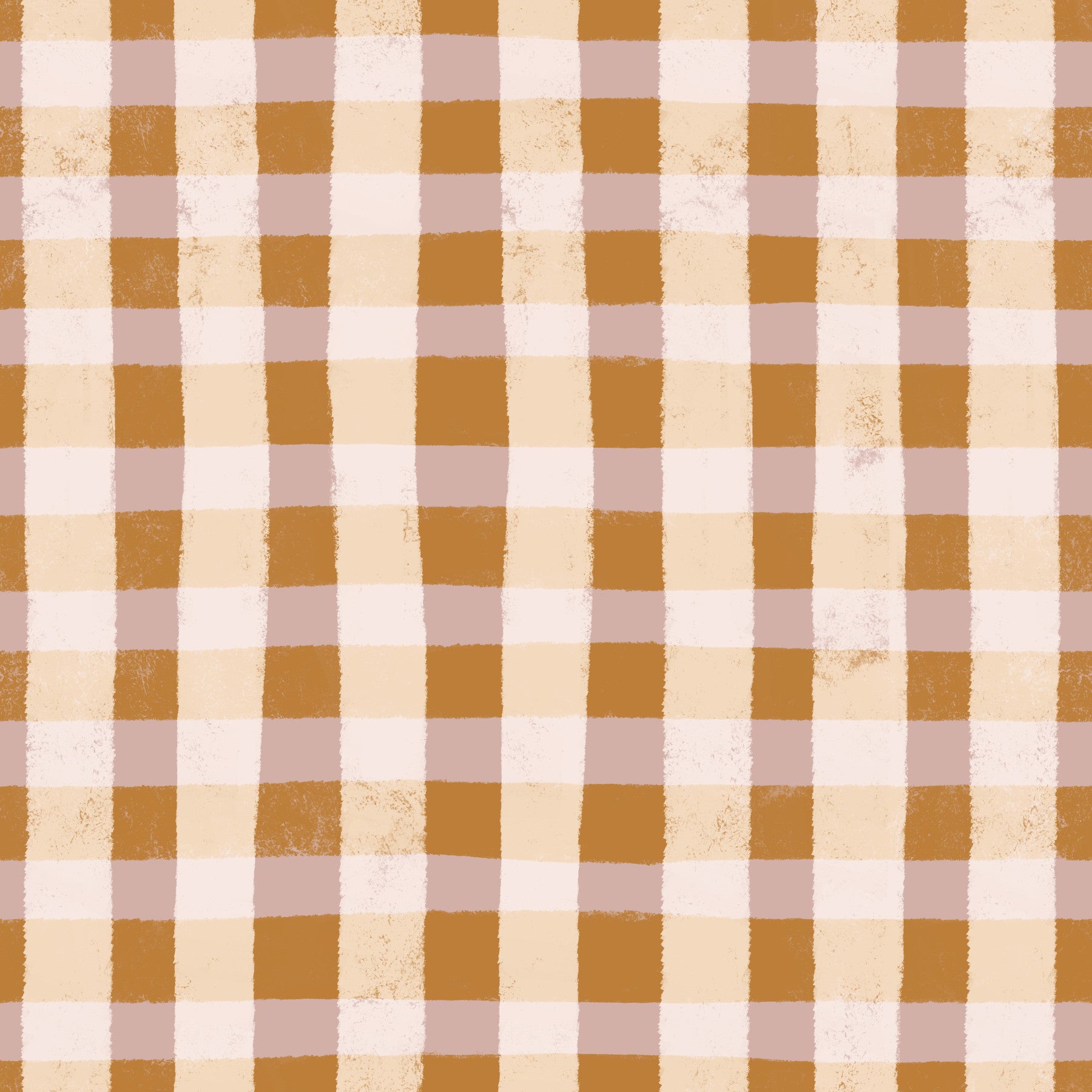 A warm-toned wallpaper featuring rustic gingham checks that evoke a homely, country vibe.