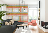 This design showcases a charming, hand-painted effect, turning simple stripes into a stylish backdrop. Soft blues, mustards and corals blend against an off-white, lending warmth to any space. Install this wallpaper for walls in kitchens, hallways or nurseries for a playful ambiance. It complements rustic and modern interiors with its unique linear structure.