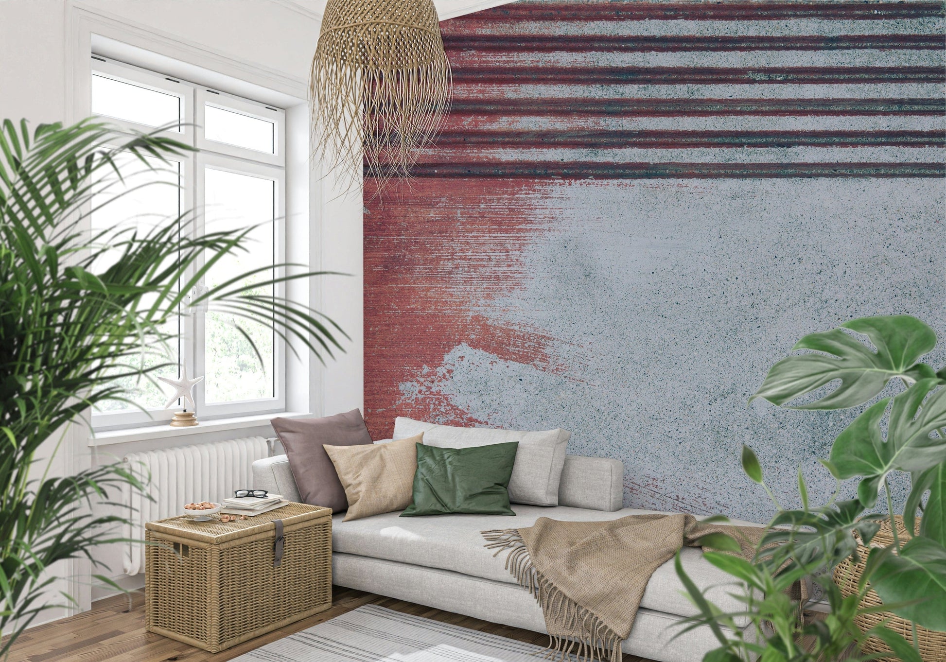 This wallpaper captures the essence of aged concrete with a splash of rustic rouge. The interplay between textured surfaces and gradient hues creates a dynamic, industrial feel. Imagine this as wallpaper for walls in a modern living space, an edgy office, or a cool urban loft. It brings a touch of raw elegance, giving any interior a bold and distinct visual statement. The pattern lends itself well to minimalist furniture and metallic accents.